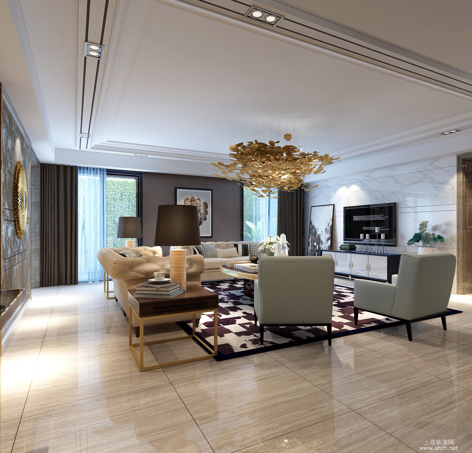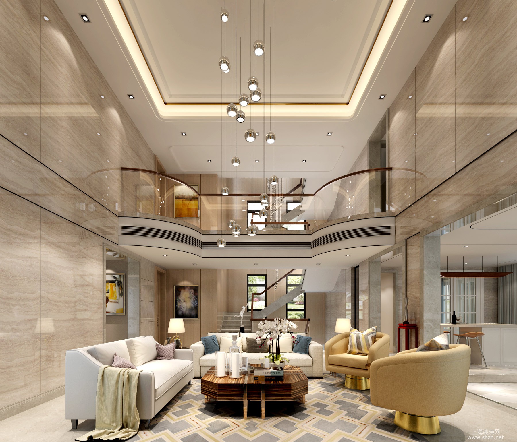 客厅 - 白金瀚宫别墅项目装修现代轻奢风格设计案例展示,上海腾龙别墅设计作品,欢迎品鉴