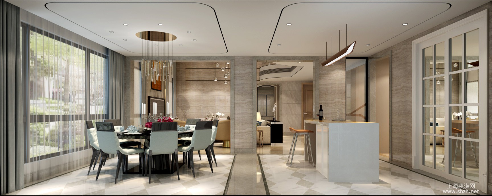 餐厅 - 白金瀚宫别墅项目装修现代轻奢风格设计案例展示,上海腾龙别墅设计作品,欢迎品鉴