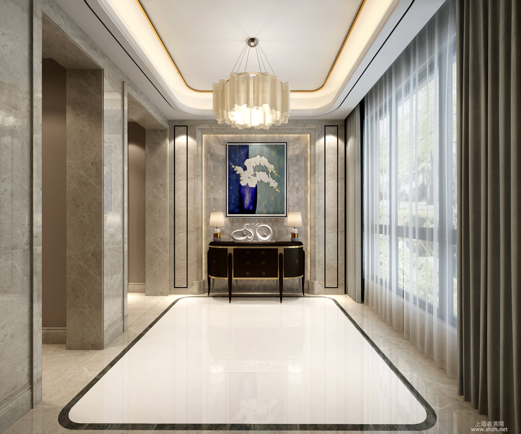 走廊 - 白金瀚宫别墅项目装修现代轻奢风格设计案例展示,上海腾龙别墅设计作品,欢迎品鉴