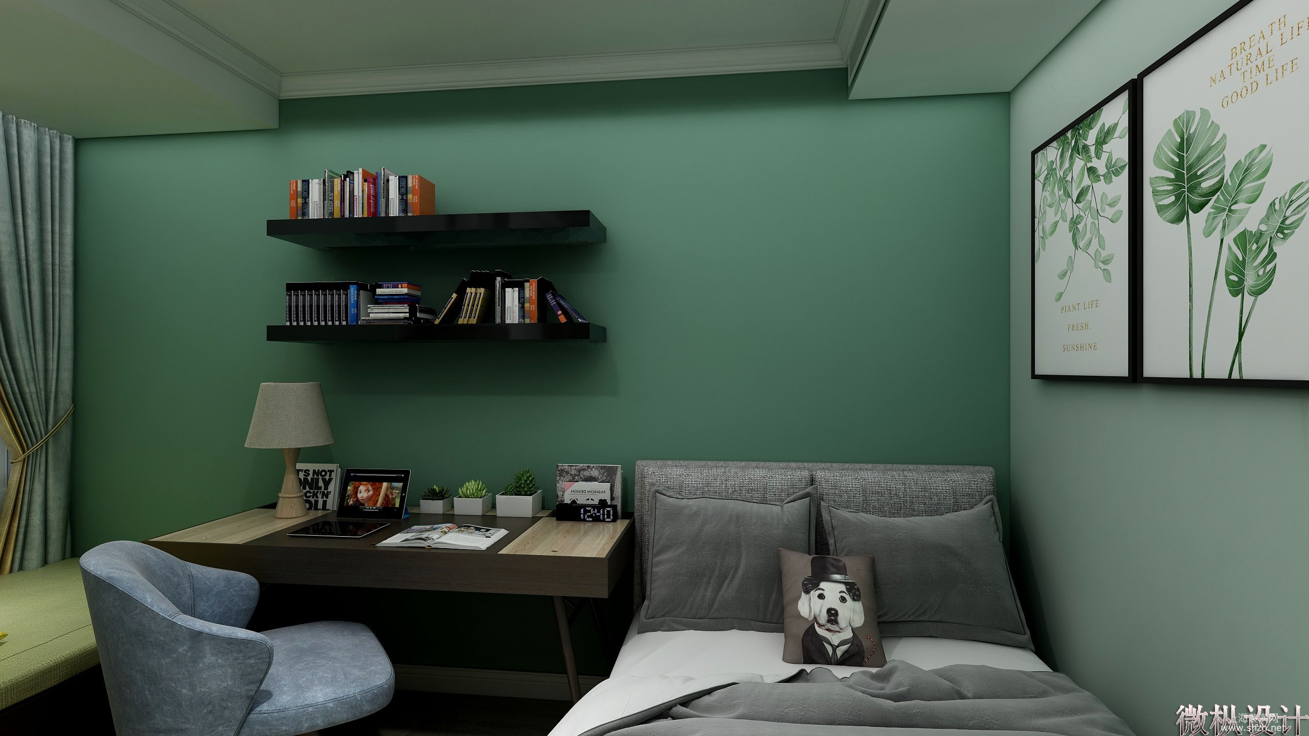 功能区 - 书桌的沉稳色调 让整体墙面色彩不会在时尚中失去它的沉稳.