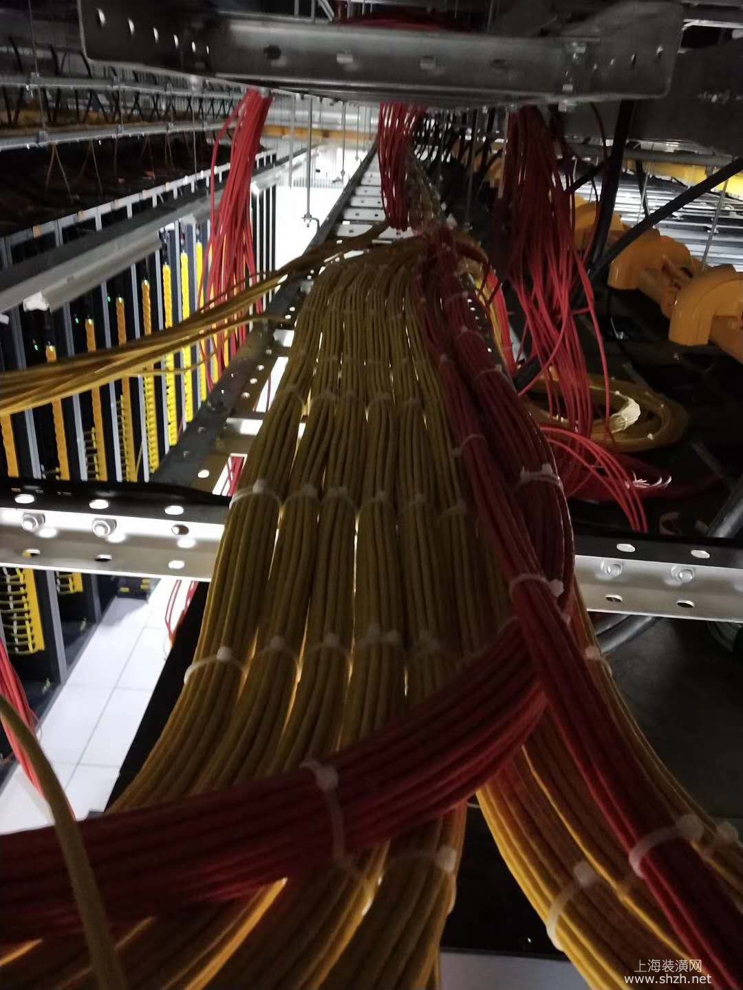 桥架上面扎线 - 防止线打绞,每根捋直,颜色分类排放。