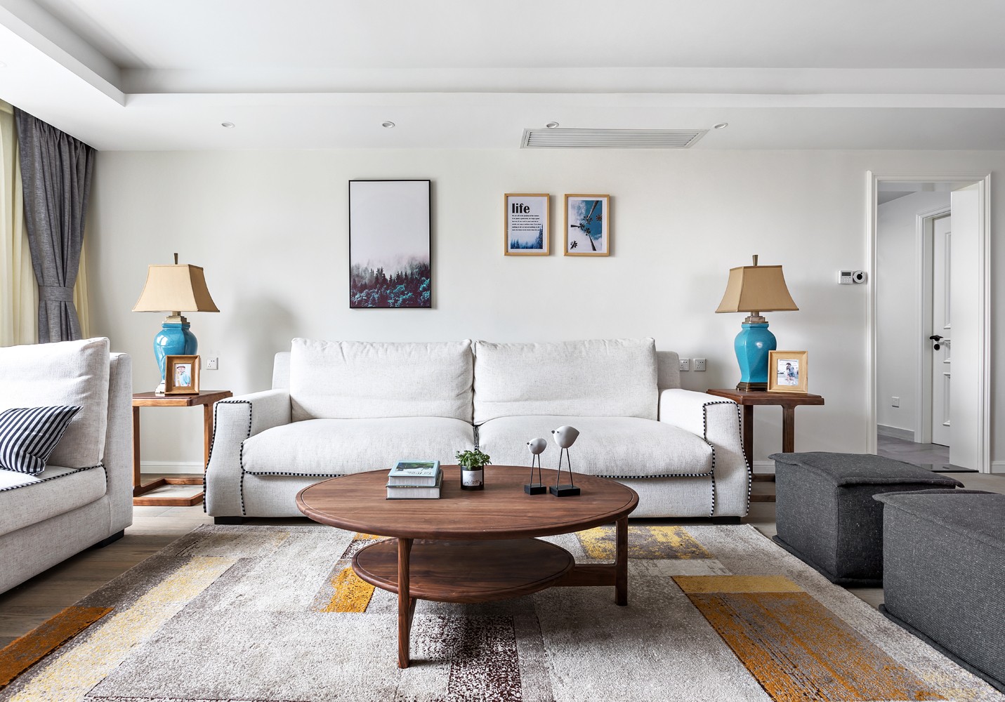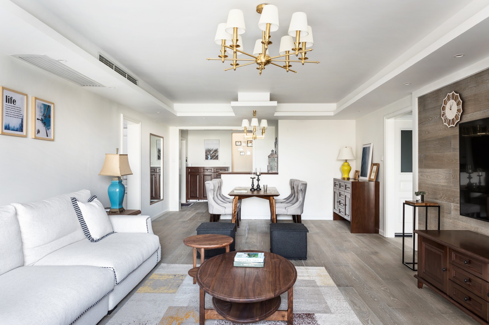下面给大家带来的这套家居装修案例是一套面积为148㎡的新房,这个宽敞的大户型在装修风格上选择了简约混搭风的设计,颜色上以白色为主,然后配色核桃木的家具以及灰色的原木,再加上一些精致的软装配饰,全屋展示着不一样的美感!