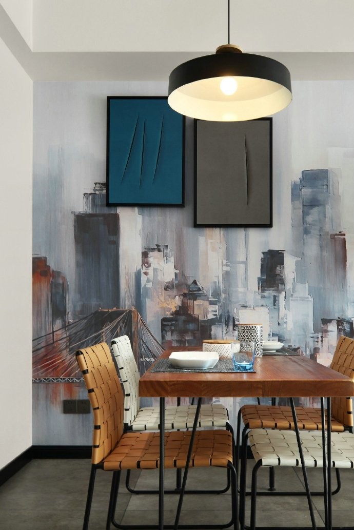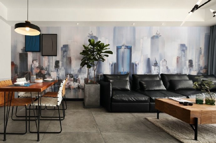 75㎡时尚小两居 造价:¥ 9万 本案为90后小夫妻居住,年轻人的爱情,其实是需要物质支撑的。 电视背景墙设计贴上业主要求的壁画简约时尚。 沙发背景墙采用壁画设计和黑色沙发搭配艺术气息浓厚。 餐厅设计采用原木元素,靠边桌利用每个空间。 L型现代化厨房设计,白色橱柜设计搭配黑色边框设计。简约大气。 玄关进门设计转角沙发,沙发下方设计了储物柜,增大收纳空间,给人眼前一亮的感觉。