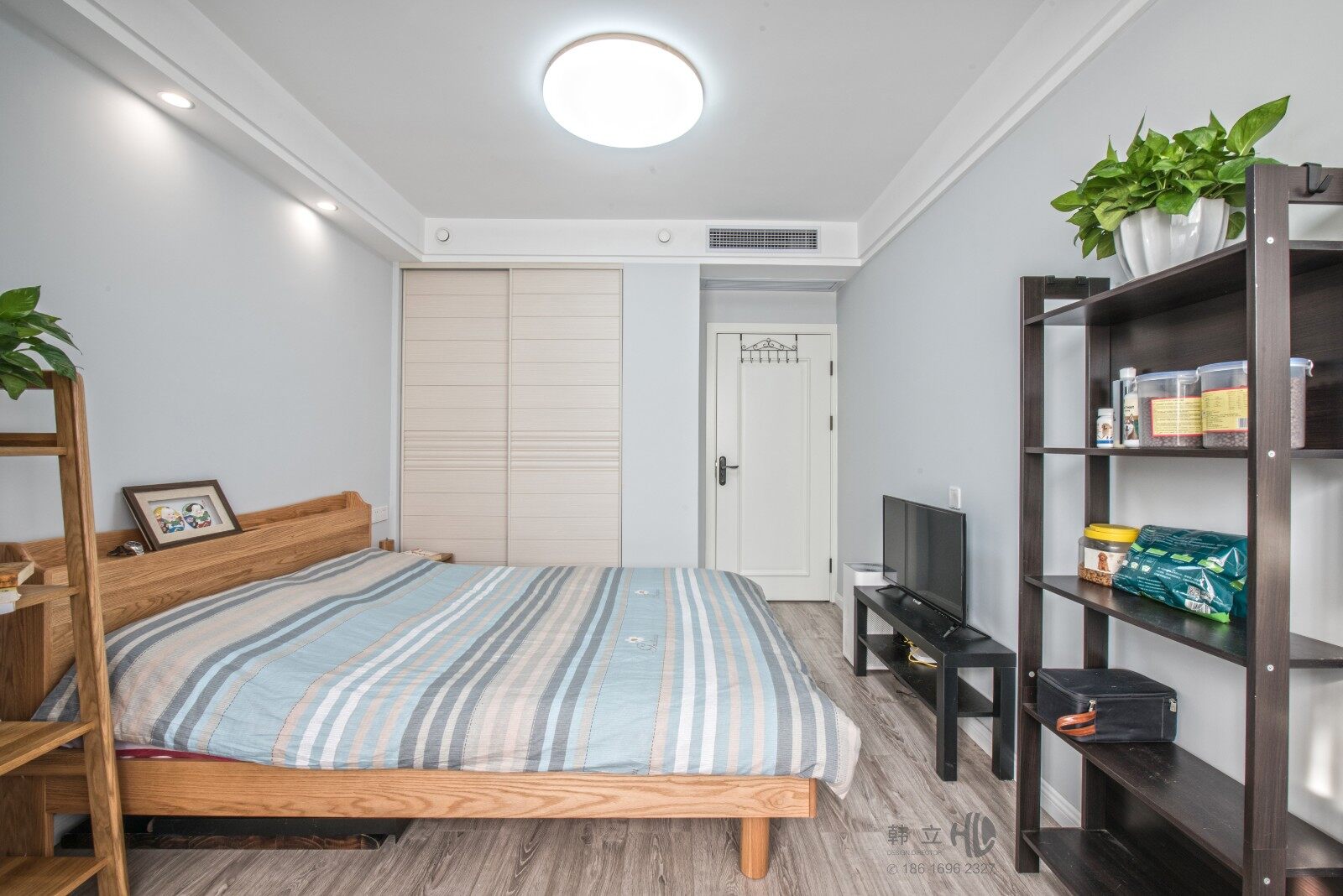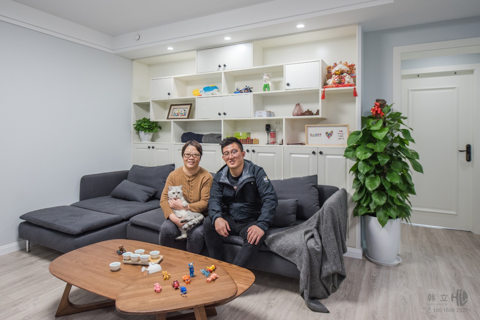 这些年流行的就是这种以板式定制家具为主的装修。就像这套86平的家居,设计上空间通透利落,增加了区域之间的互动性,色彩上浅浅的蓝加上原木色的家居,清新简约