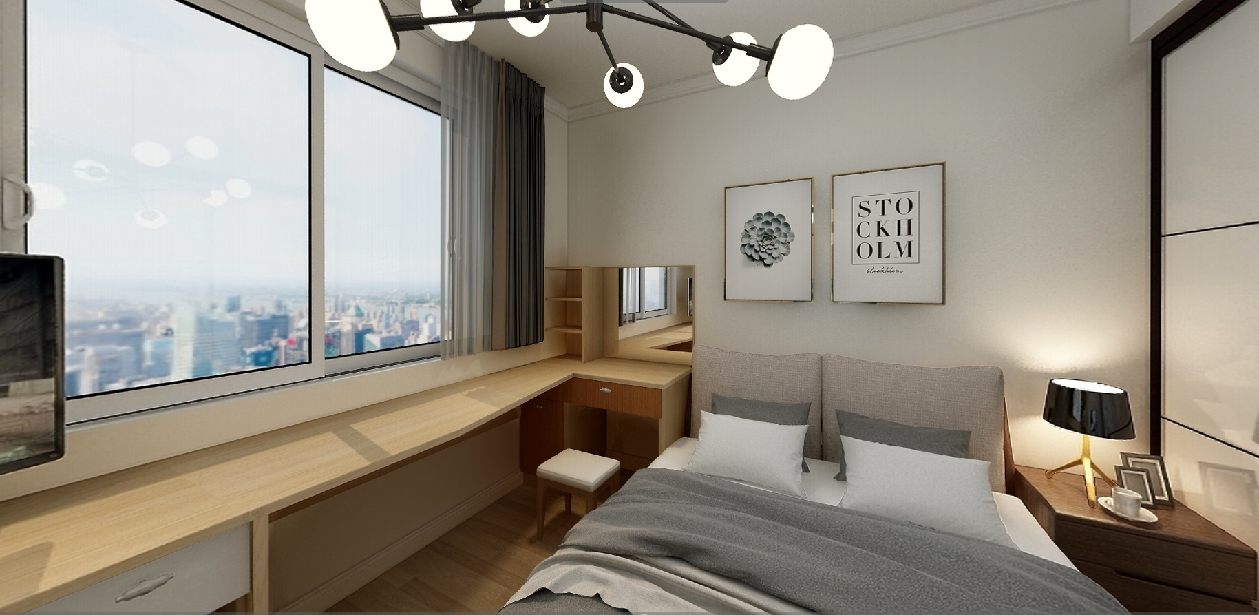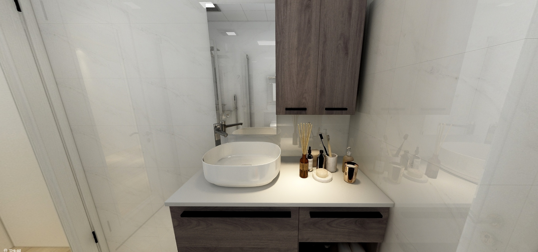 该整体设计风格为北欧风格,十分契合这个户型的面积和业主的要求,两居设计,次卧暂时给老人居住,之后给孩子作为儿童房。卫生间采用干湿分离设计。