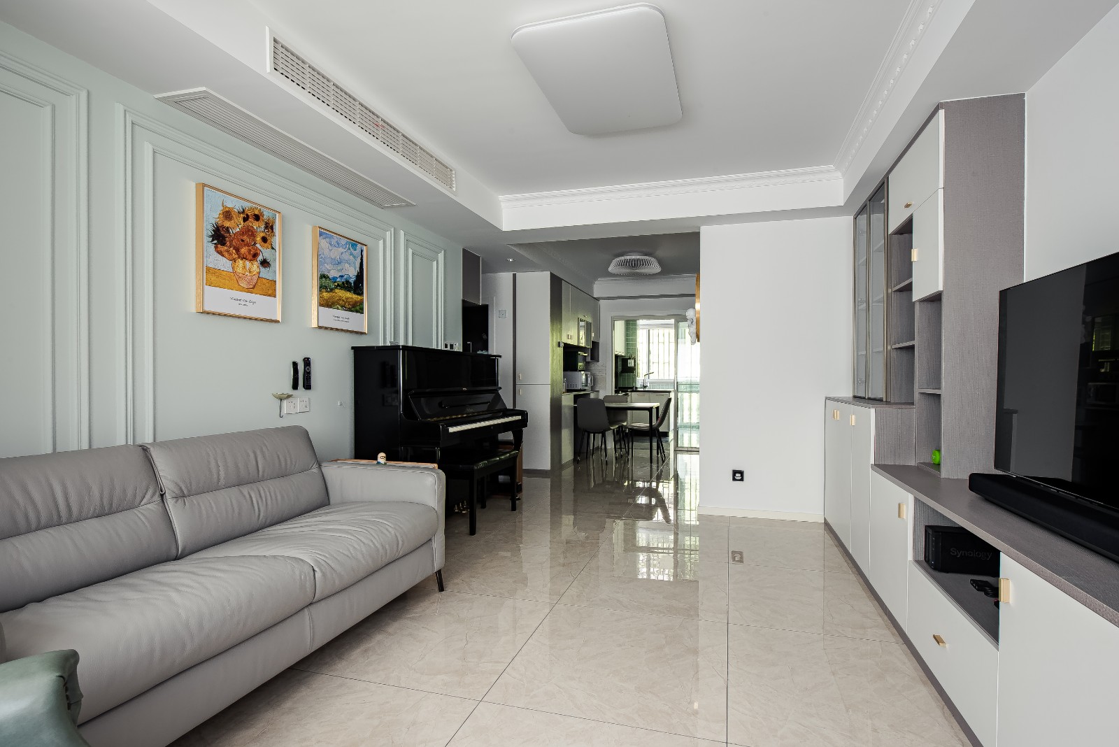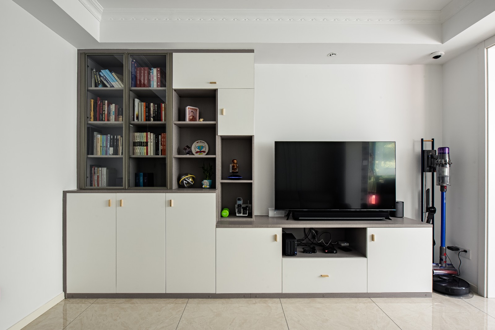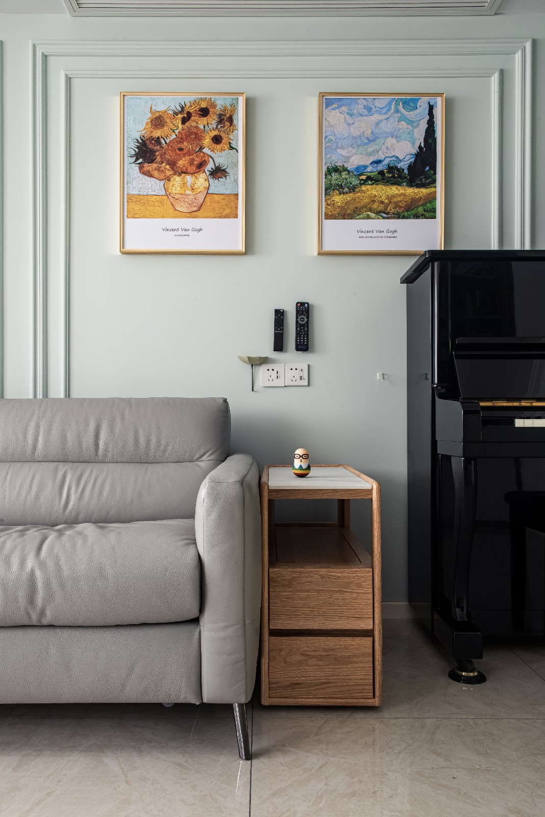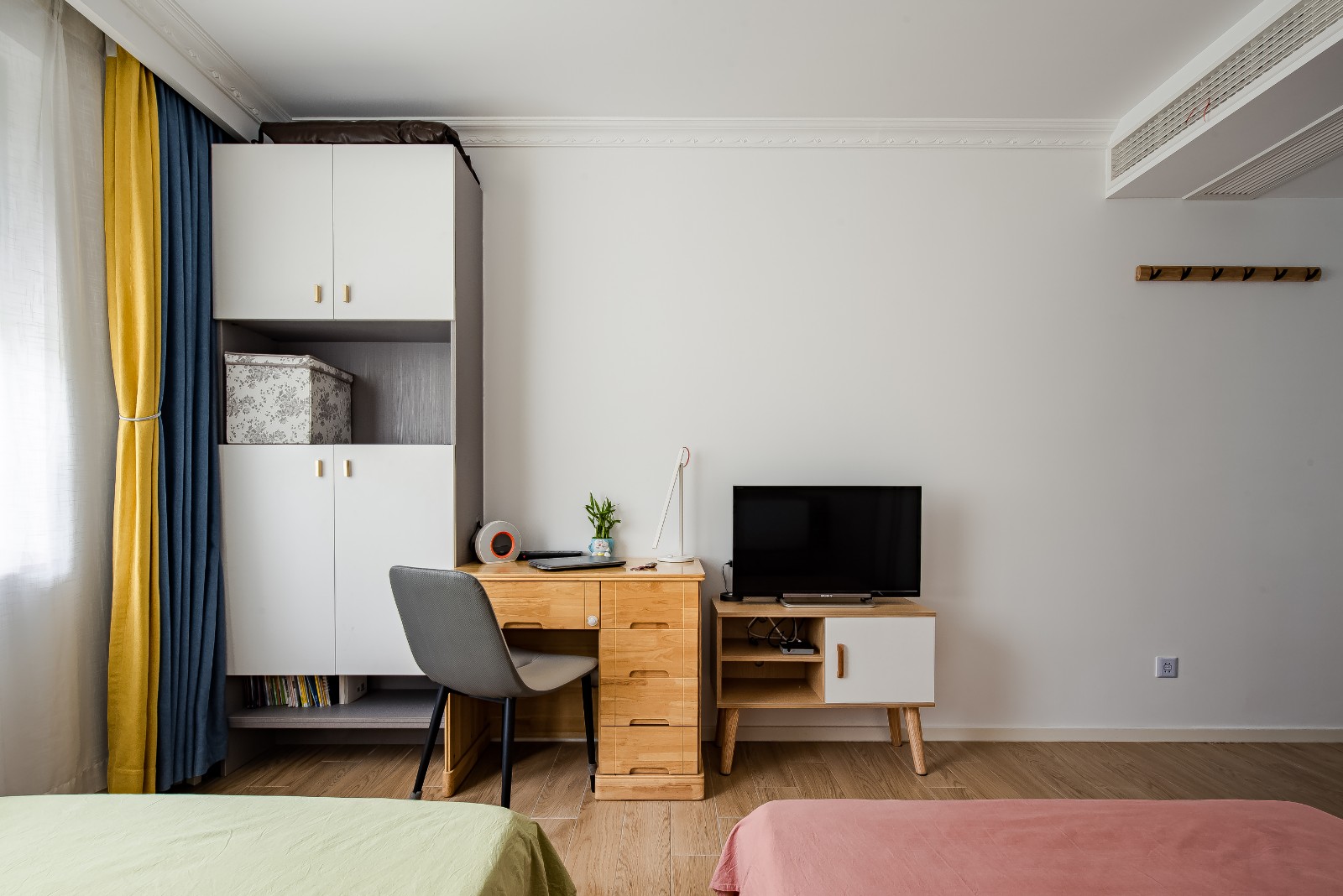 很多买了精装房的住友们都有想改造却不知如何下手的困扰。今天给大家推荐的这个案例仅用10w就将精装房改造的高级又简约。 整体色彩布置的没有采用太暗的元素,设计师 在主卧处增设了通顶柜体,增加了储物空间,提升了空间的利用率,采用灯带与筒灯来照明,解决了采光问题也为空间增添了温馨感。客厅显得更有设计感,灰色的皮艺沙发搭配糖果绿石膏线边框线条,石膏线的做法简单,简约有趣的挂画做点缀,让简约的空间多了几分慵懒与有趣。