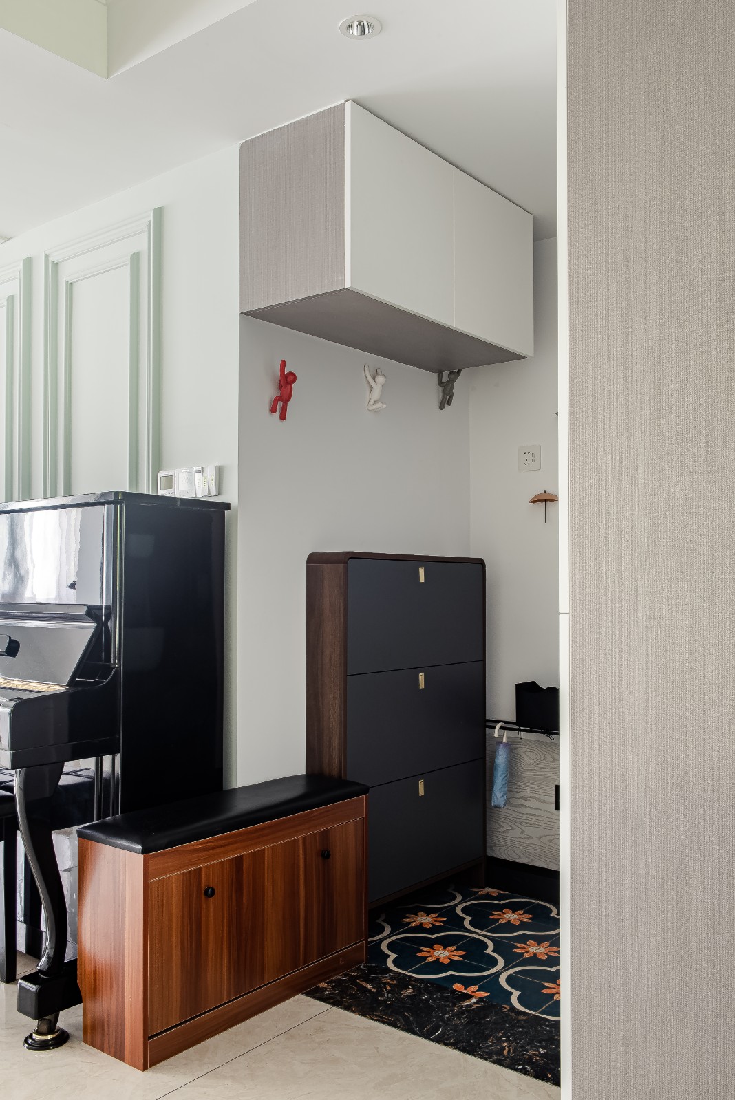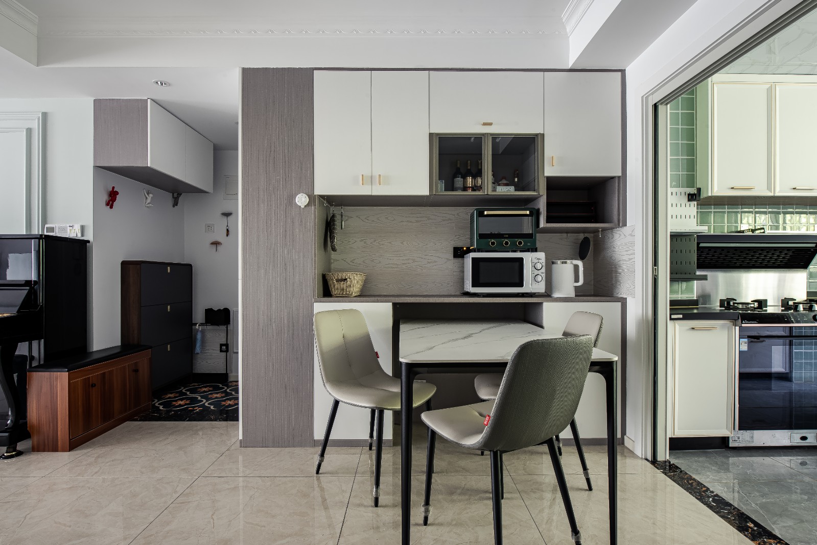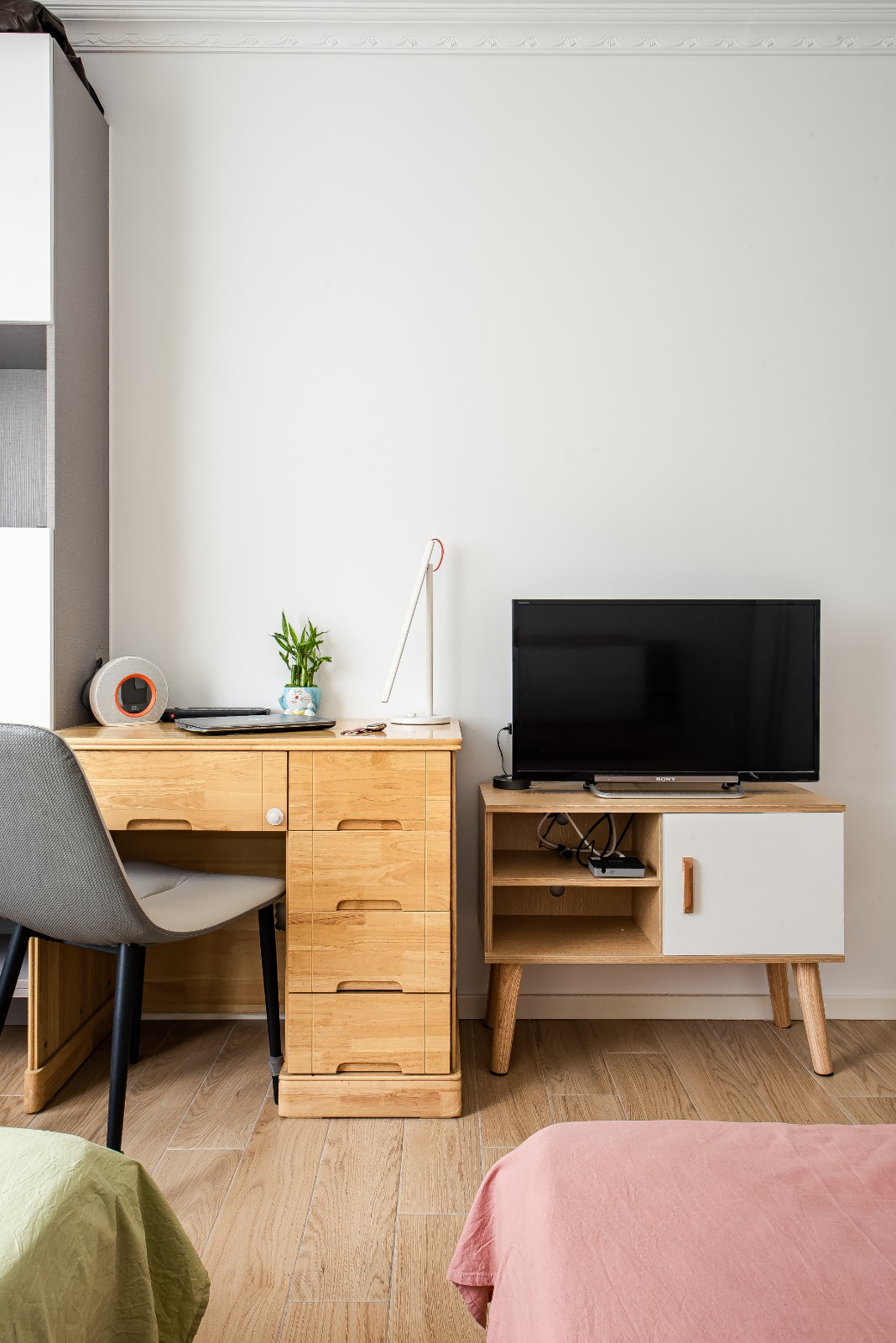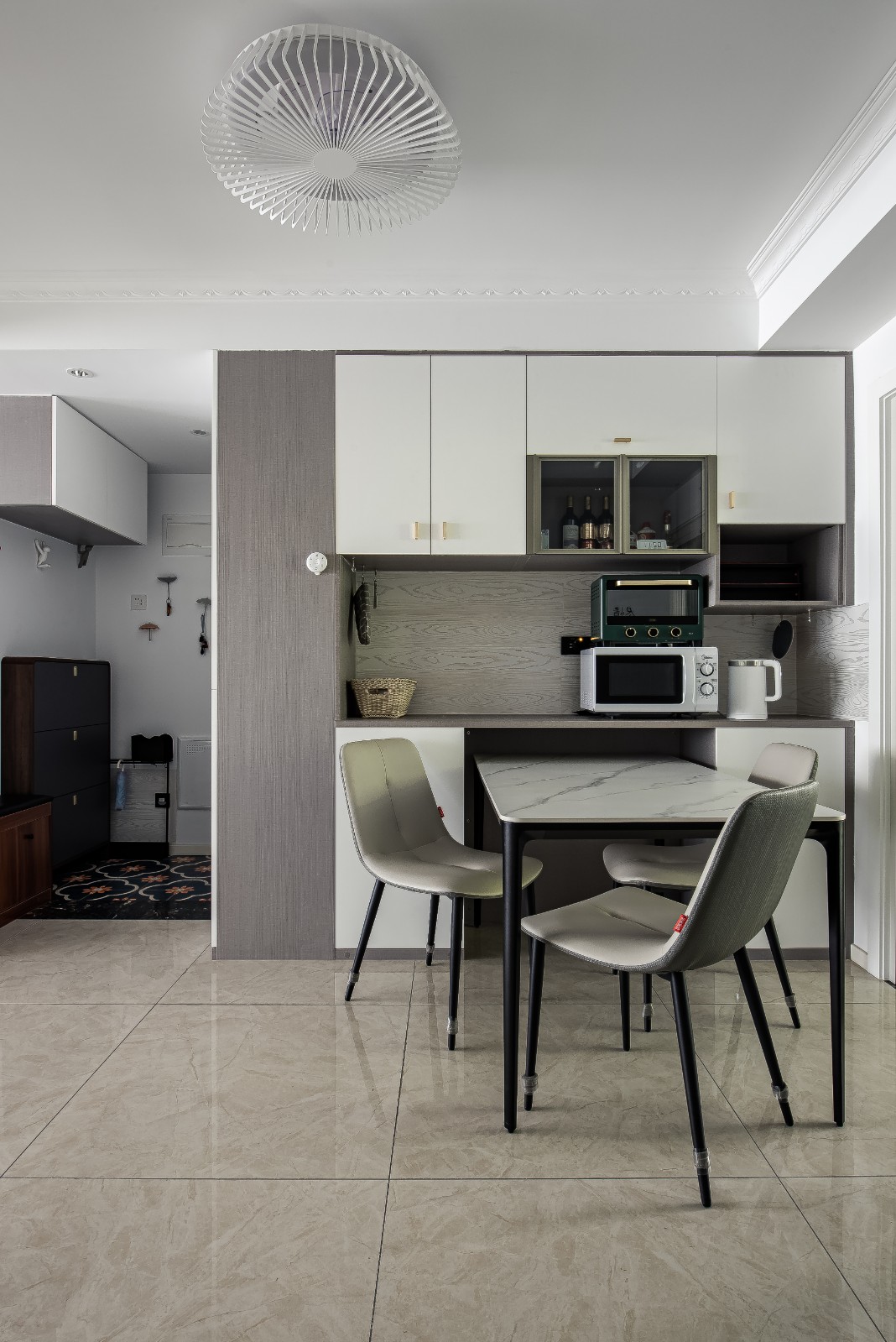 很多买了精装房的住友们都有想改造却不知如何下手的困扰。今天给大家推荐的这个案例仅用10w就将精装房改造的高级又简约。 整体色彩布置的没有采用太暗的元素,设计师 在主卧处增设了通顶柜体,增加了储物空间,提升了空间的利用率,采用灯带与筒灯来照明,解决了采光问题也为空间增添了温馨感。客厅显得更有设计感,灰色的皮艺沙发搭配糖果绿石膏线边框线条,石膏线的做法简单,简约有趣的挂画做点缀,让简约的空间多了几分慵懒与有趣。