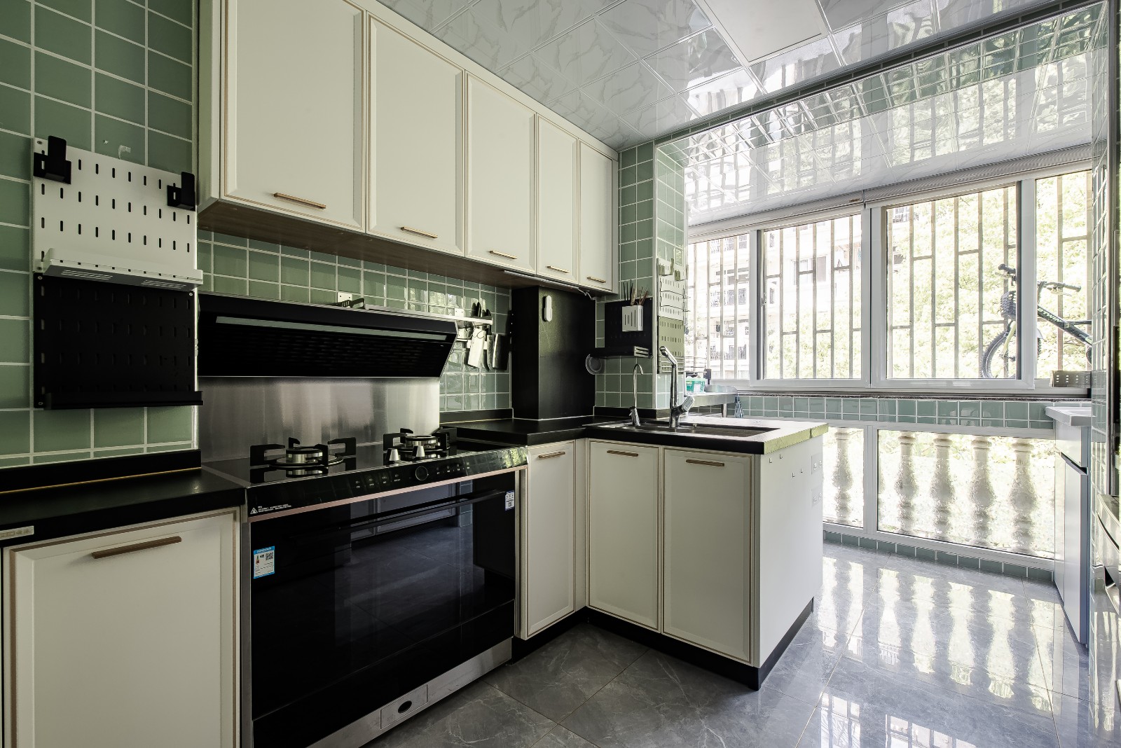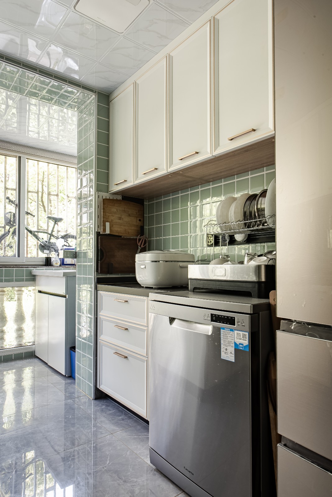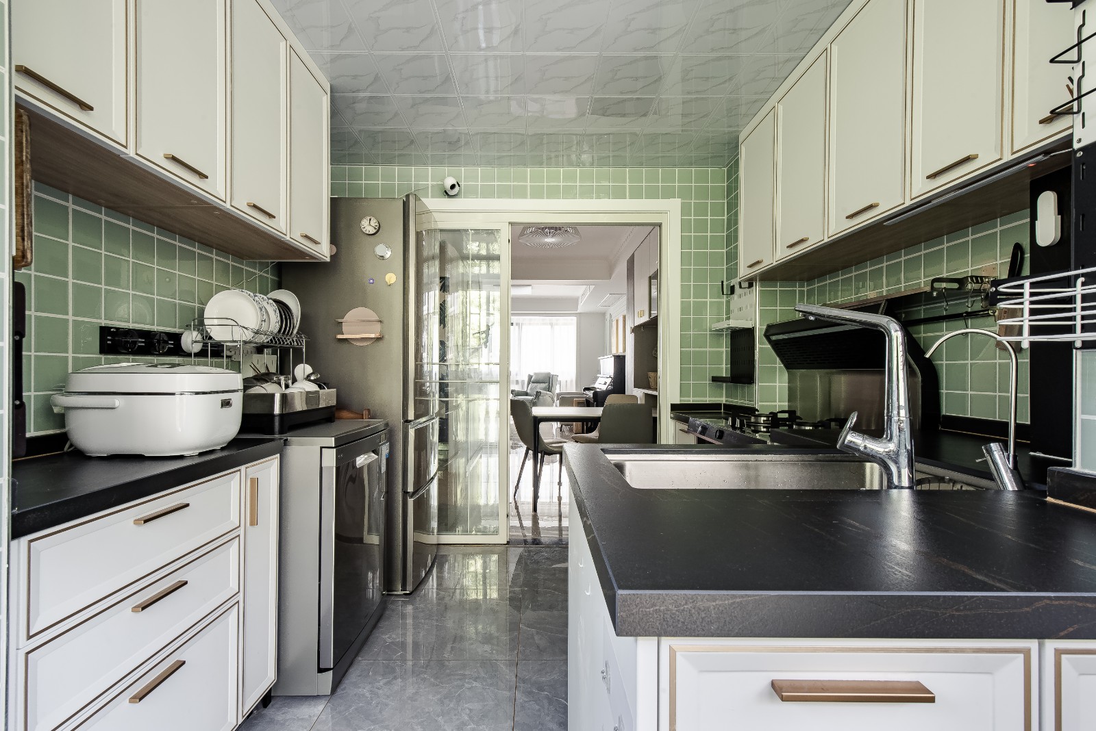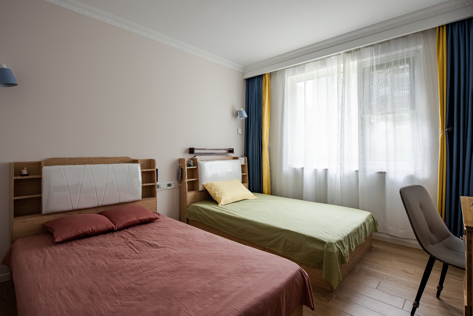 很多买了精装房的住友们都有想改造却不知如何下手的困扰。今天给大家推荐的这个案例仅用10w就将精装房改造的高级又简约。 整体色彩布置的没有采用太暗的元素,设计师 在主卧处增设了通顶柜体,增加了储物空间,提升了空间的利用率,采用灯带与筒灯来照明,解决了采光问题也为空间增添了温馨感。客厅显得更有设计感,灰色的皮艺沙发搭配糖果绿石膏线边框线条,石膏线的做法简单,简约有趣的挂画做点缀,让简约的空间多了几分慵懒与有趣。
