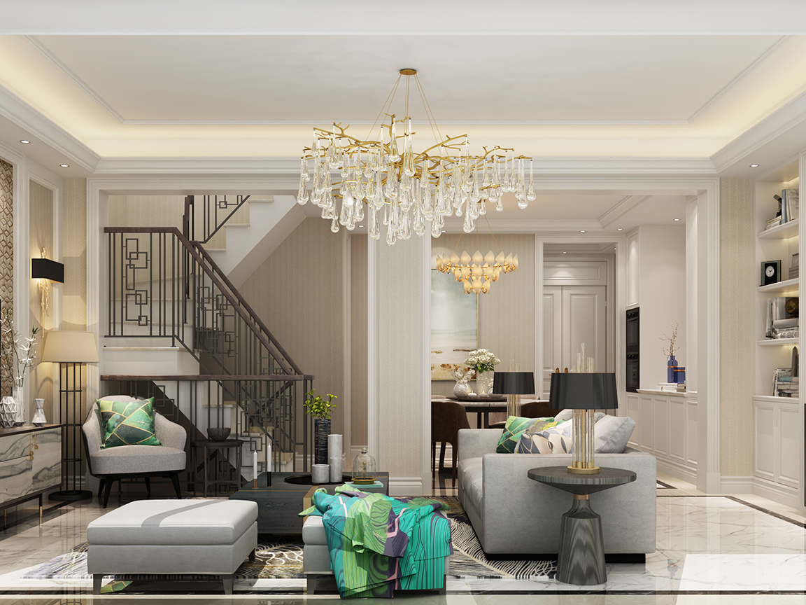该案为户主第一居所,未来退休后居住,小孩结婚后周末常住。同时兼顾三代同堂的收纳和活动。设计风格要求以户主为主,干净整洁。整体格调偏浅,带田园元素。同时充分结合本案特质,将花园的景观元素成功引入室内,里外一体。