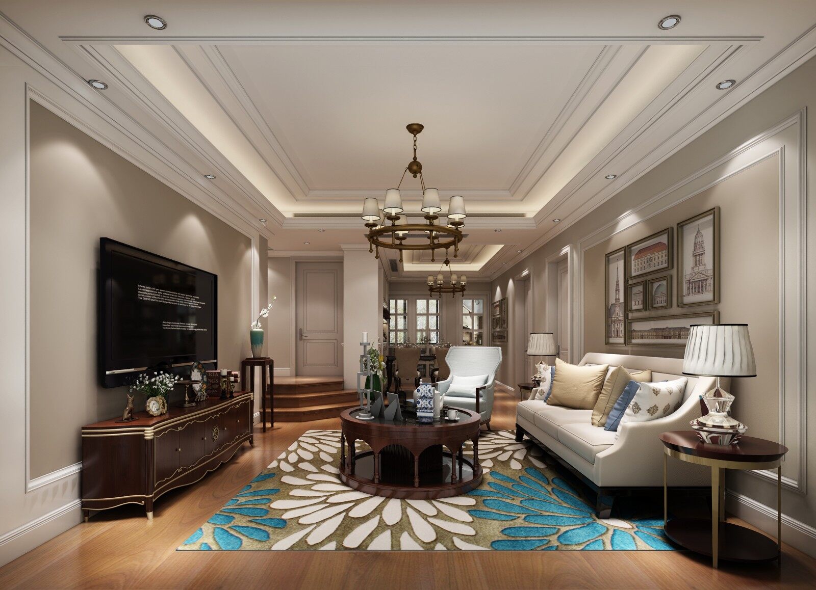 整个案例根据业主生活习惯、实用功能、喜好、及动线合理划分;在传统的意义上住宅是:居住者生活模式和审美习惯的结合,在深刻的认知居住者的生活习惯和审美的基础之上,用现代和美式的元素诠释了空间的风格; 此案例围绕简约美式为主题,亮色调居室简约而又不失大气,稳重而又不失自然,活脱脱地将居室打造出了简约美式的气息,以简洁明快的设计风格为主调,打造简洁、实用的简约美式风居家。