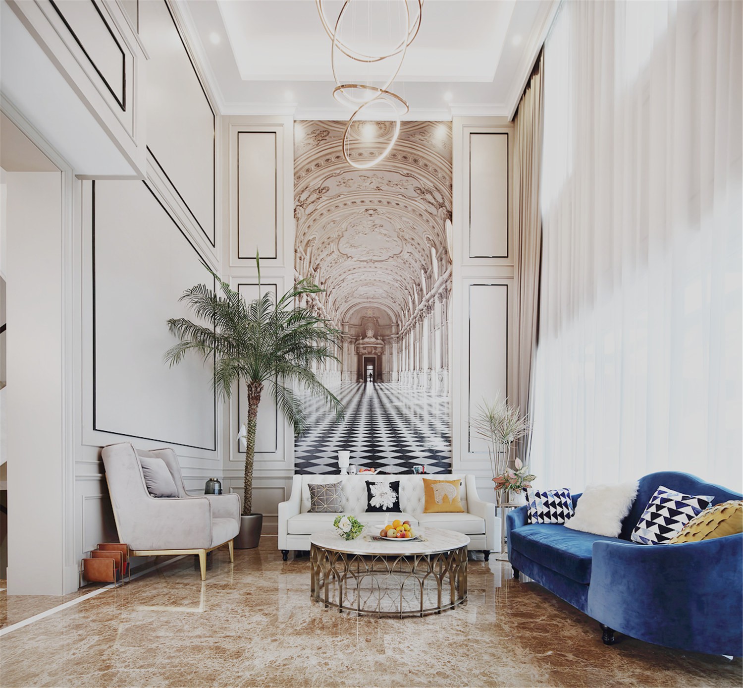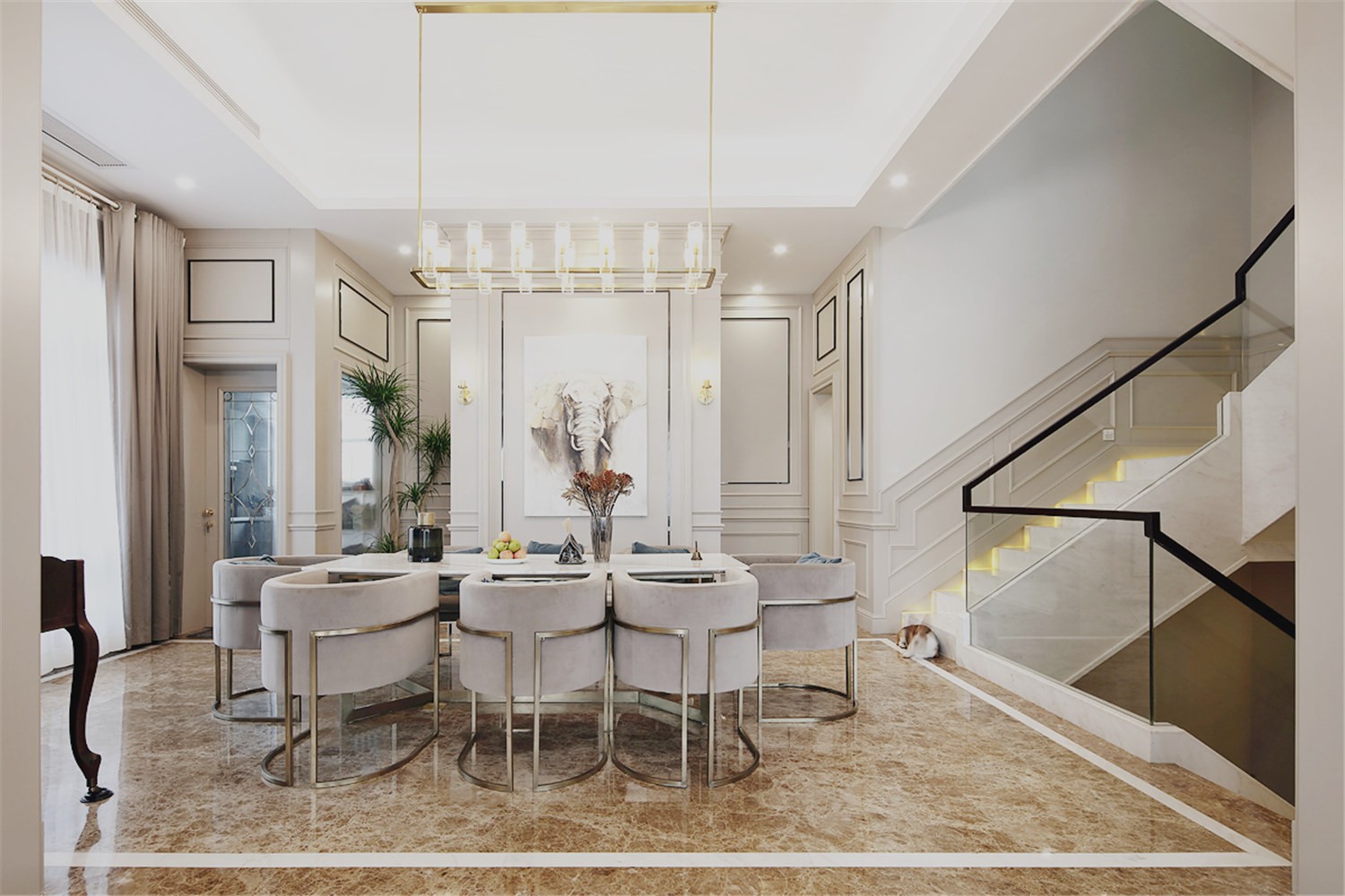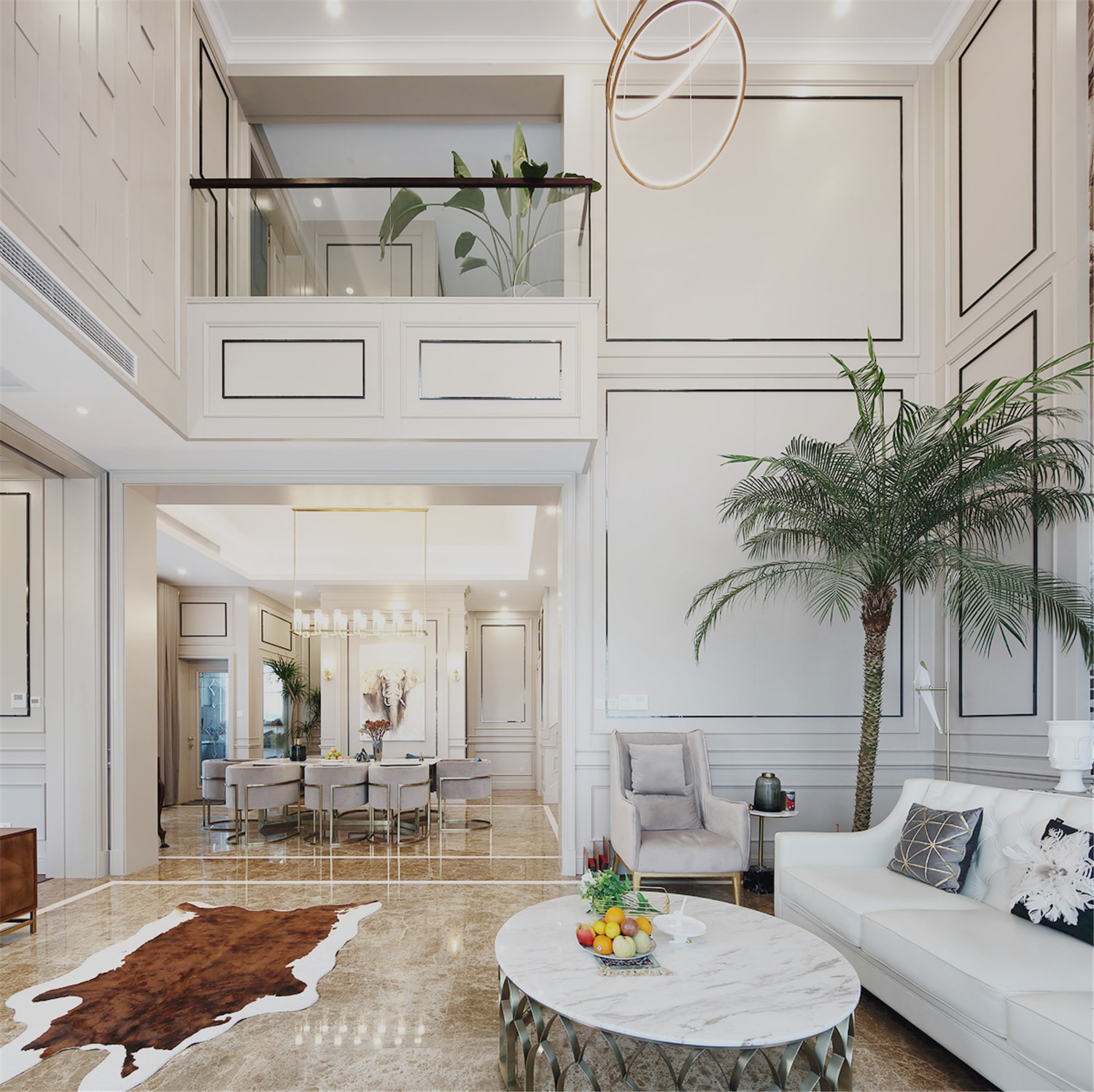 本作品不拘泥于所谓风格,设计师主张去风格化设计。以浪漫纯美作为表达的意境,设计师将白色作为这座梦幻天堂的主色调,用米色、咖色等统一的色彩绘制了一幅纯美的画面,奠定了空间的感觉和基调。用柔和的圆角处理方式弱化边界的棱角,将顶面的纯铜金属封边、白色木质墙板的纯铜金属封边和地面理石的纯铜金属封边精致化、圆润化。统一和谐的设计手法、高贵优雅的材质搭配、精美绝伦的施工工艺,描绘出一个理想化纯净、甜美、高贵又富有情调的艺术空间。