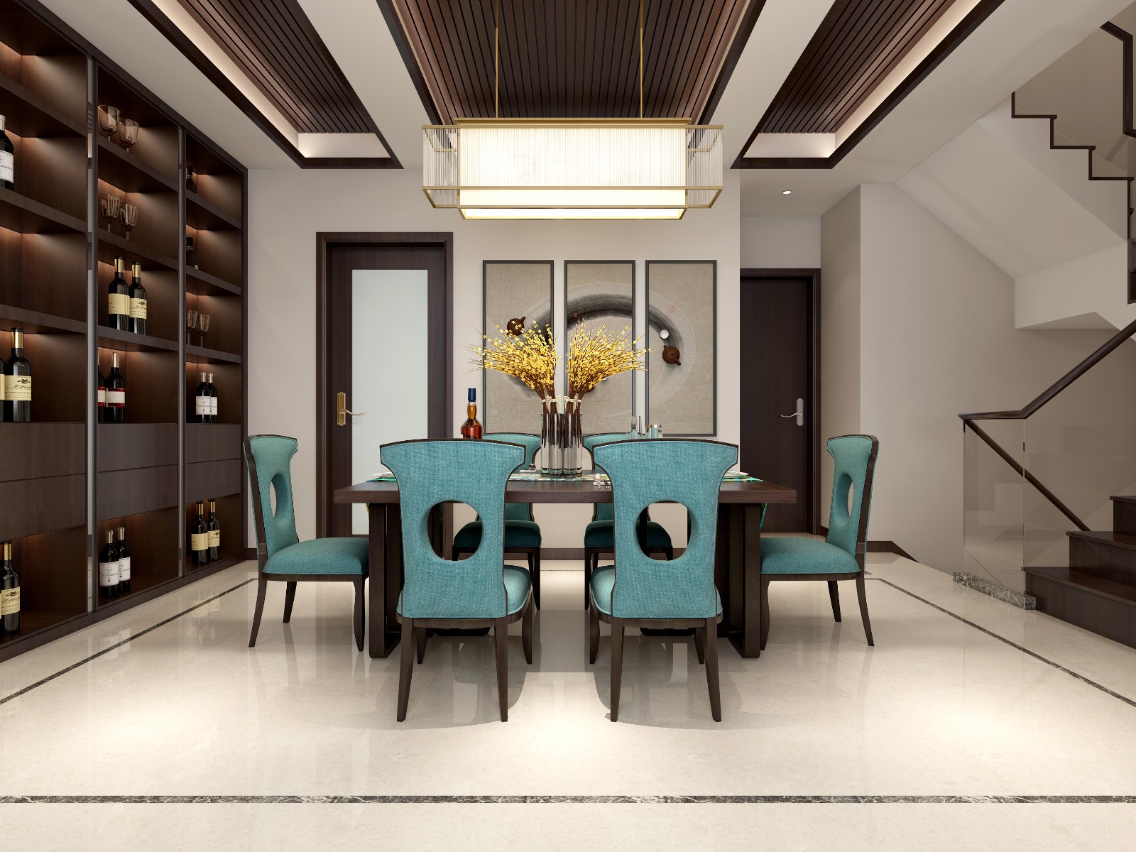 上海闵行浦江华侨城300平联排别墅项目装修新中式风格设计案例展示,欢迎品鉴!