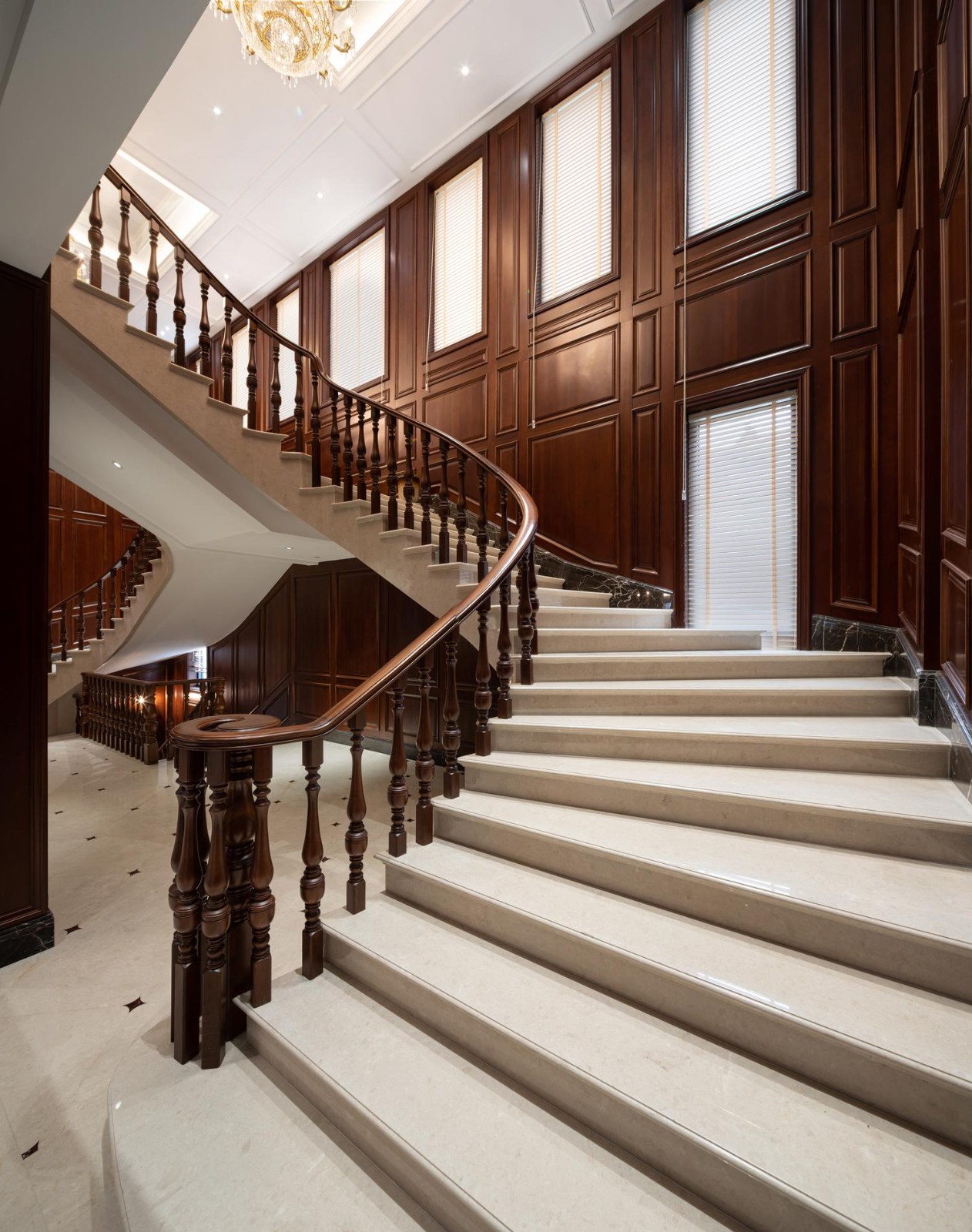 设计师就是一个造梦者,在让这个梦实现的途中,因梦想和现实的差距,整个设计还原的途中总有重重困难。如负一层入户和一层大厅电视背景墙上,宽度为三毫米的铜丝与理石交接的工艺;还有每一块白色木质墙板上,纯铜金属条四角的倒角与无缝热压镶嵌工艺;再比如白色天然理石和铜条镶嵌,且预防理石受潮反碱的高级工艺。整个方案落地还原困难重重。但还原这个“初梦”是设计师的“初心”,在反反复复研究实验,日日夜夜呕心沥血的努力下,最终设计师以梦想战胜了现实,让这份“初梦”完美的呈现、精致的还原。