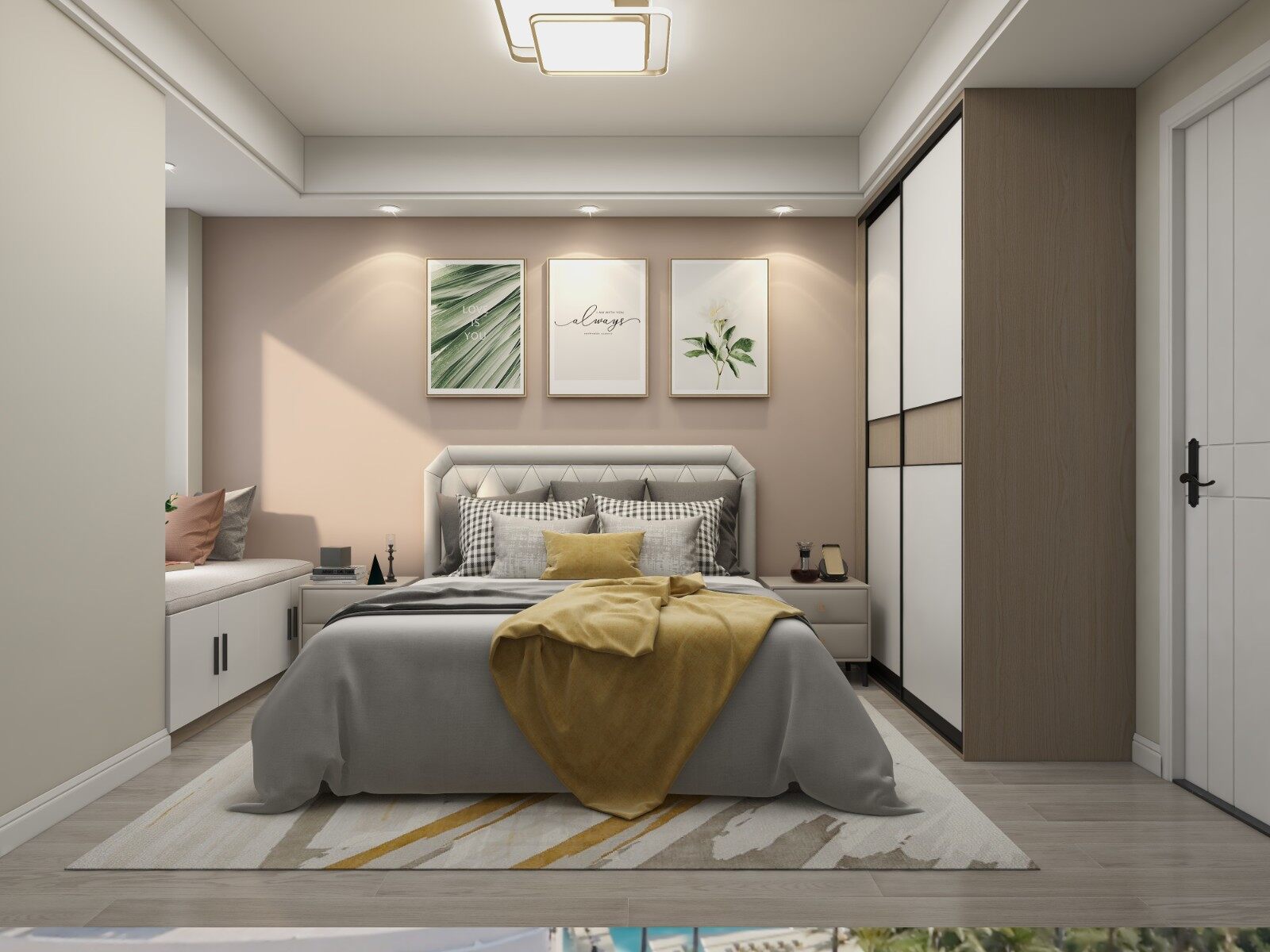 主卧背景采用的是藕粉色,飘窗改为飘窗柜。