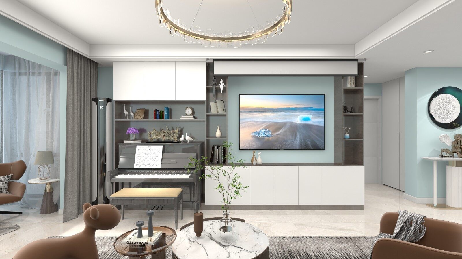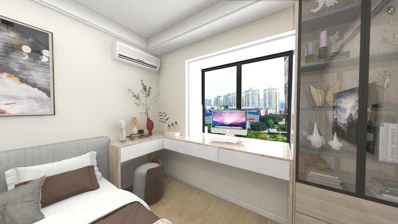本案原始户型厨房和餐厅之间的关系比较尴尬,厨房储物功能并不多,餐厅功能比较苍白;男屋主需要室内有办公区域;客厅需要舒服些,预留出1.5米的宽度给以后来访的客人做入住需求做准备。