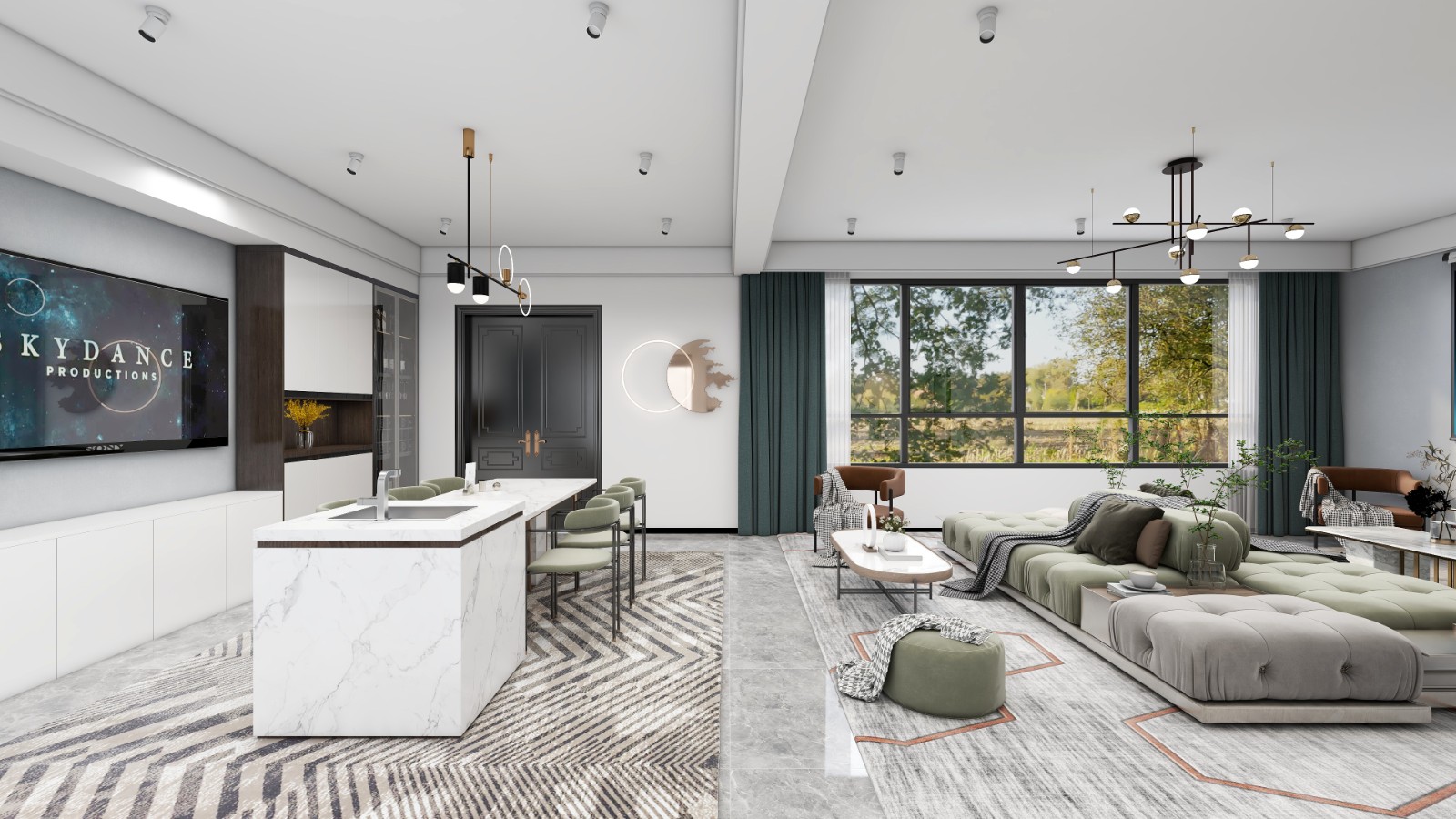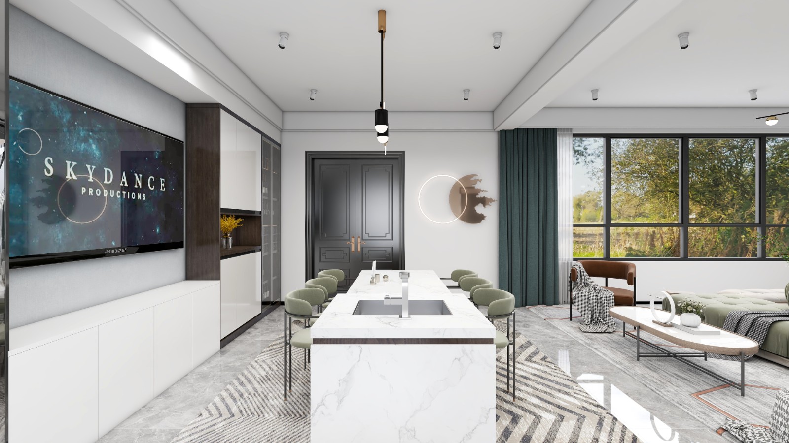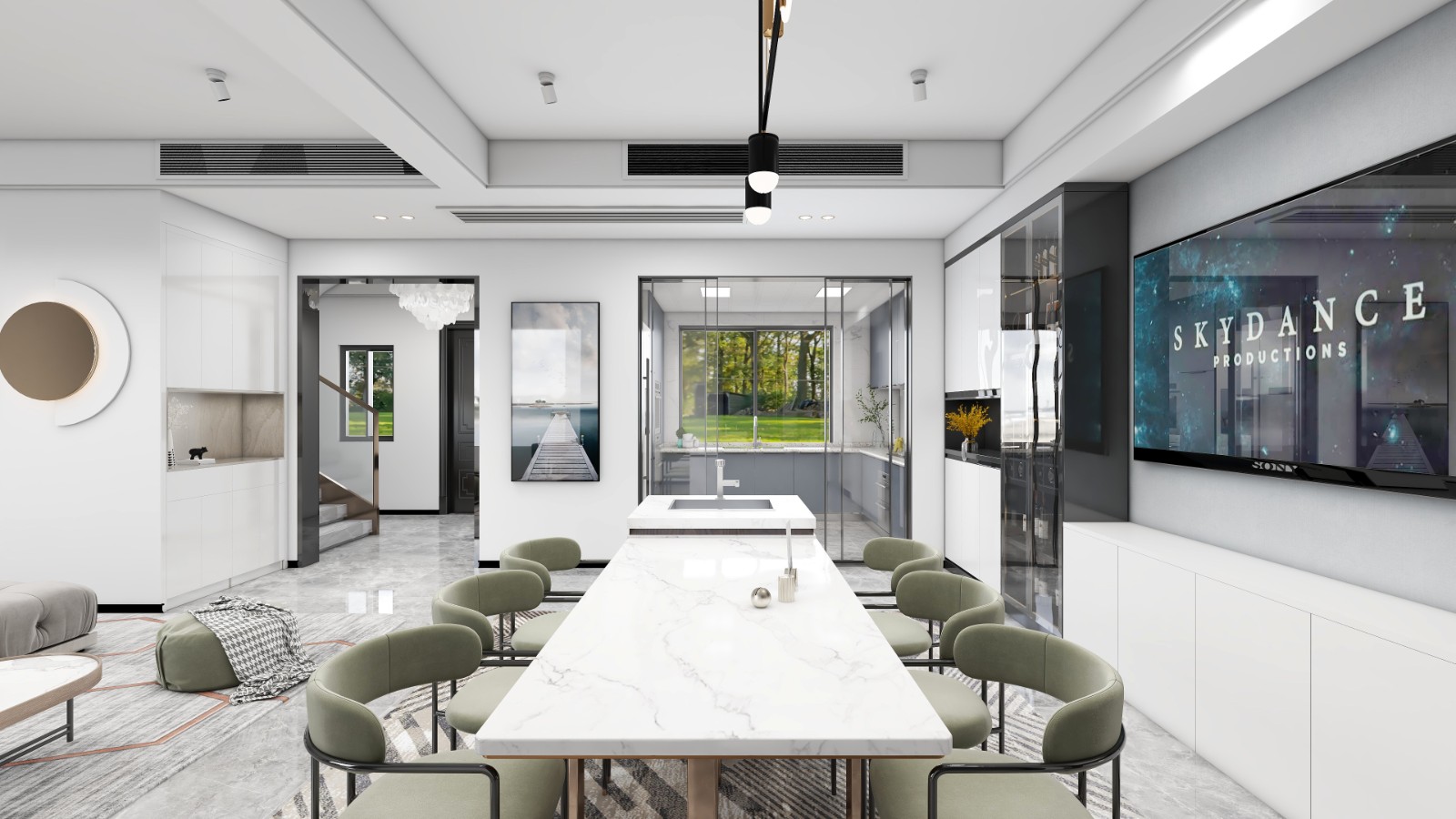 业主是国外回来的年轻人,所以和业主沟通后整个方案也就围绕着简单整洁大气时尚的方向去设计的,墙面不需要做复杂造型,留白,软装点缀,整体感觉看着舒适有格调。每个空间都很大,客餐厅开放式的连在一起再配上相应的照明灯光氛围后,让整个格局呈现了时尚的同时又让房屋通透敞亮.