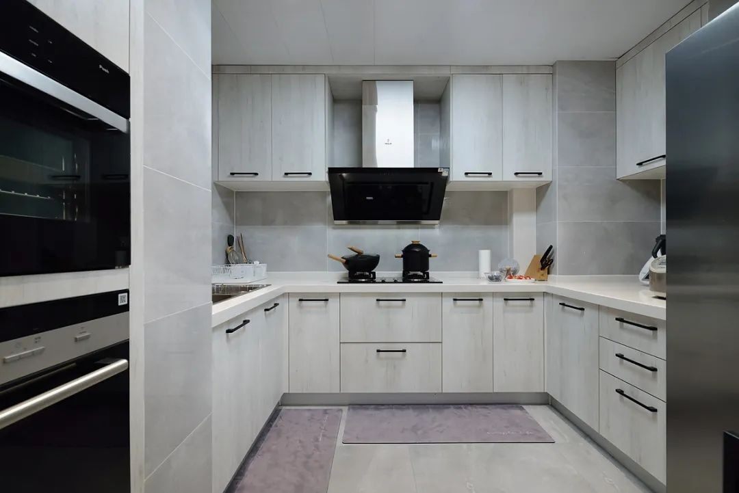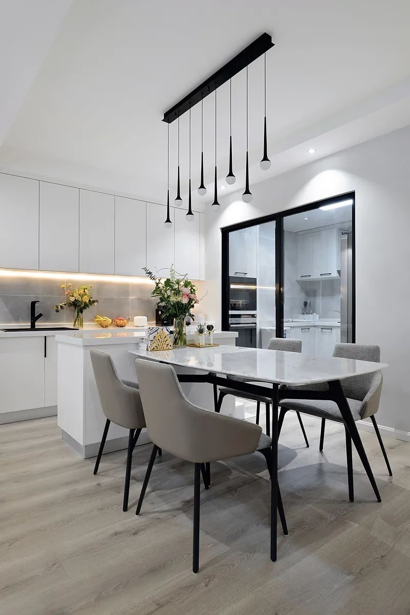 本案原户型缺点:1、原本客餐厅采光不好,空间比较压抑;2、厨房小,L型橱柜,利用率不够;3、卫生间面积很大,有点浪费;4、客厅采光不好,比较昏暗。 改造亮点:1、调整布局,客厅与次卧互换;2、增加厨房空间,采用U型橱柜;3、重新规划卫生间,部分空间给到次卧;4、客餐厨重新设计,让空间敞亮。