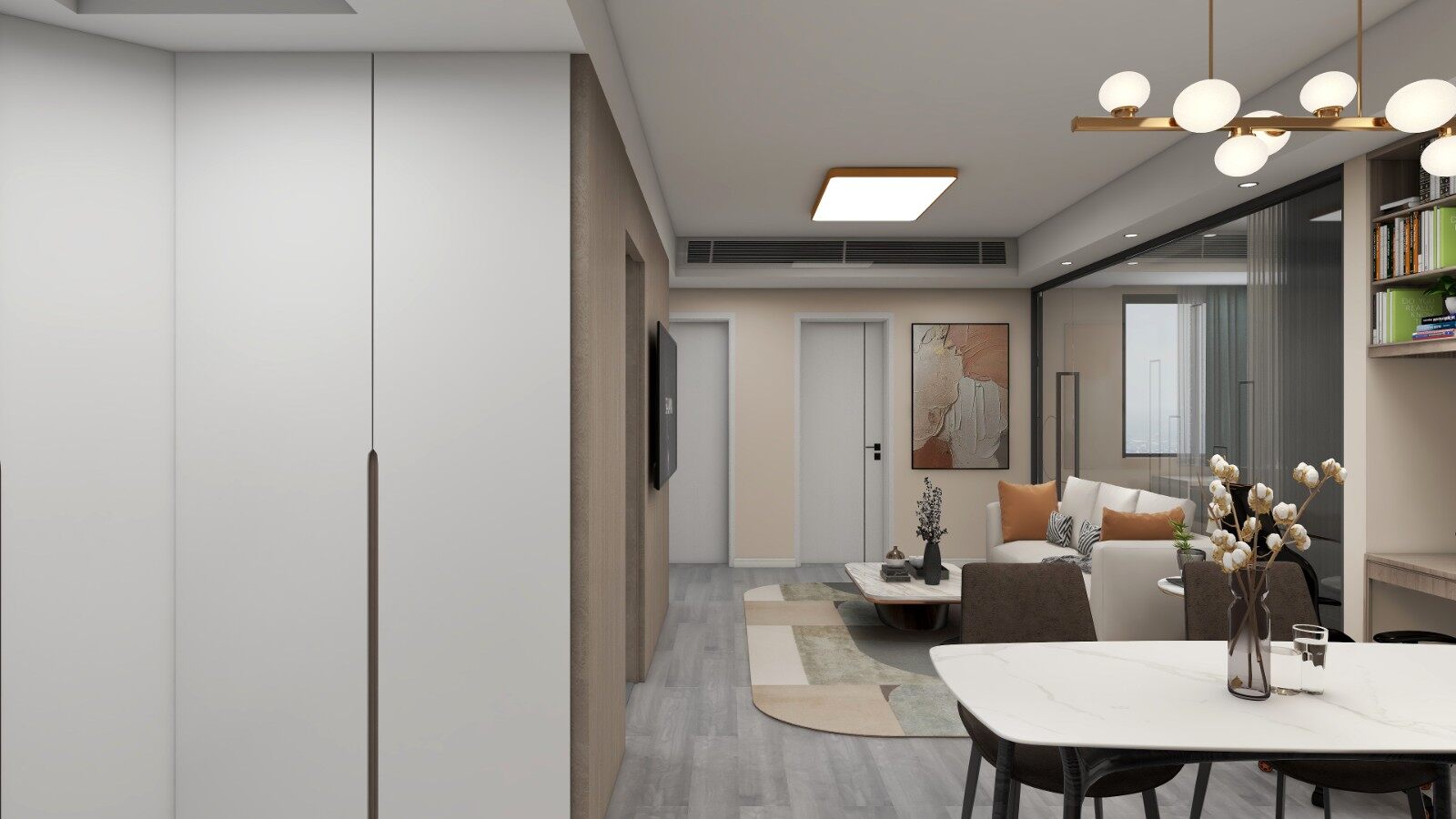 木质地板、时尚桌椅、简约灯具共同组合成家的“温柔乡”!满足屋主的日常生活情感!