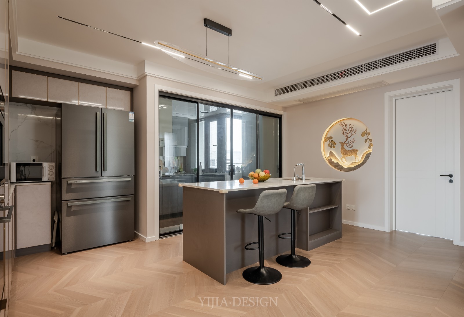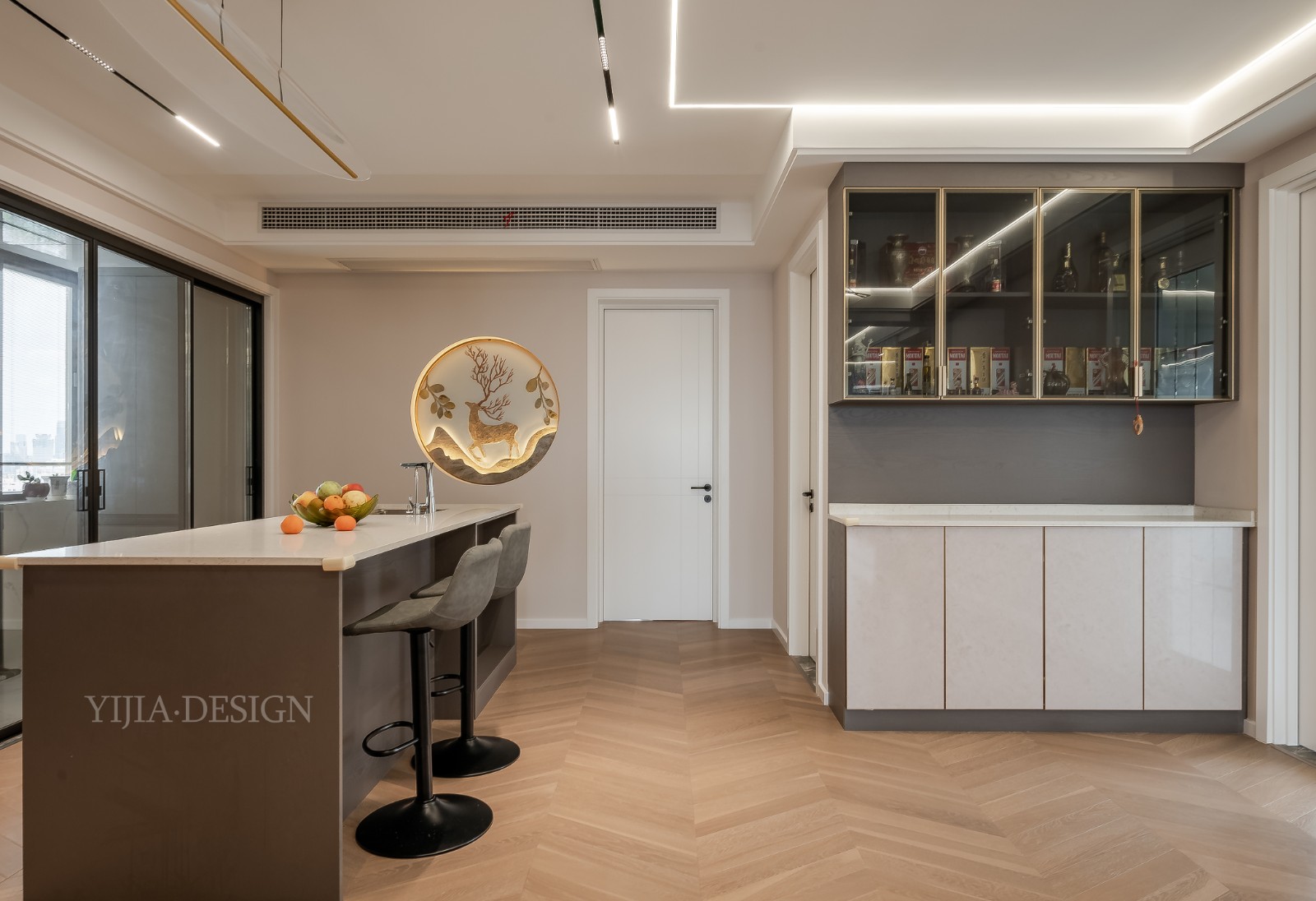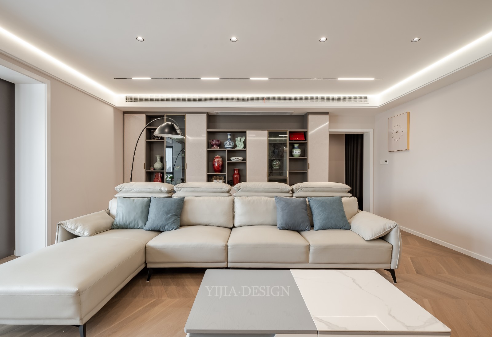 这是一套150平的新中式案例,在增添开放式格局的同时,搭配了更为简洁明快的家具饰品,整体给人一种清爽明朗的感觉,在造型上,以简单的直线条表现现代中式的古朴大方。在颜色上,采用柔和的中性色彩,给人优雅温馨,自然脱俗的感觉。
