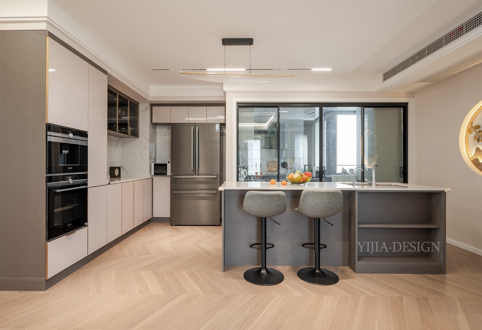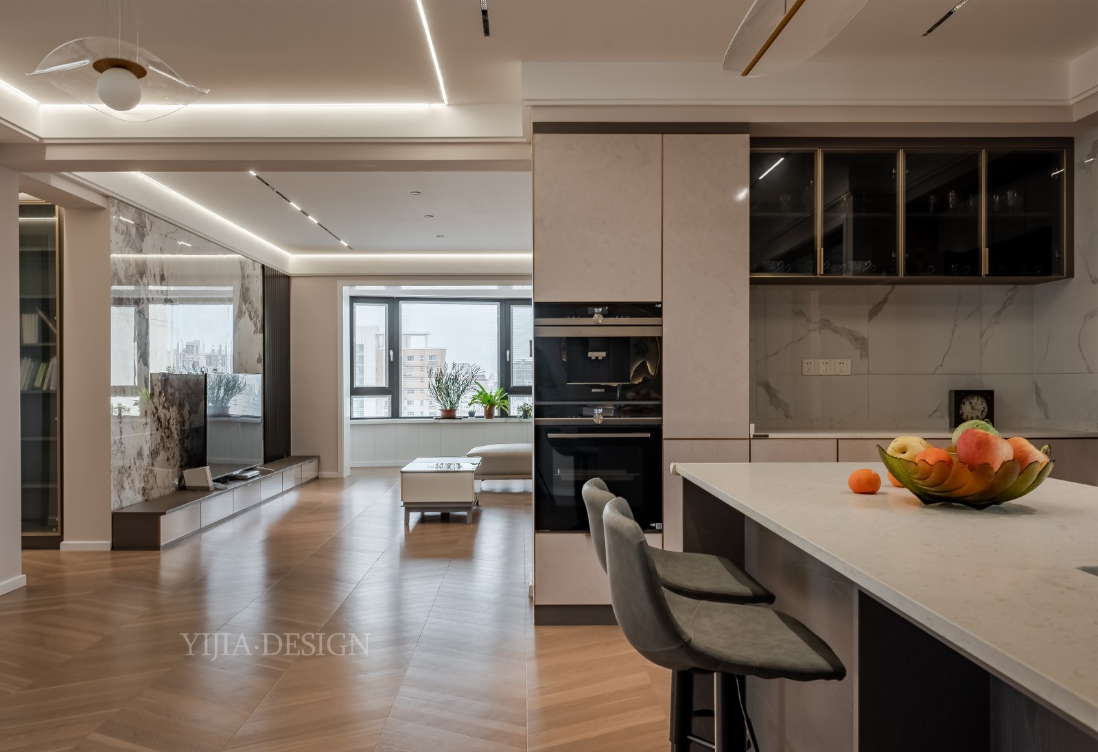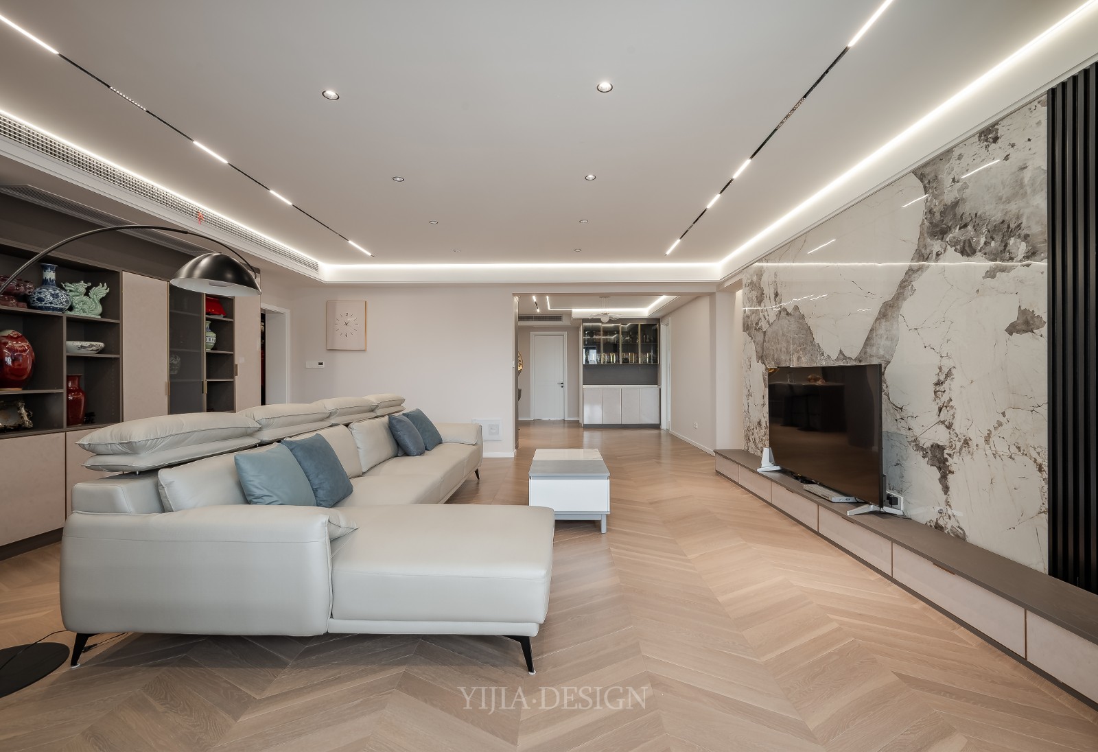 这是一套150平的新中式案例,在增添开放式格局的同时,搭配了更为简洁明快的家具饰品,整体给人一种清爽明朗的感觉,在造型上,以简单的直线条表现现代中式的古朴大方。在颜色上,采用柔和的中性色彩,给人优雅温馨,自然脱俗的感觉。