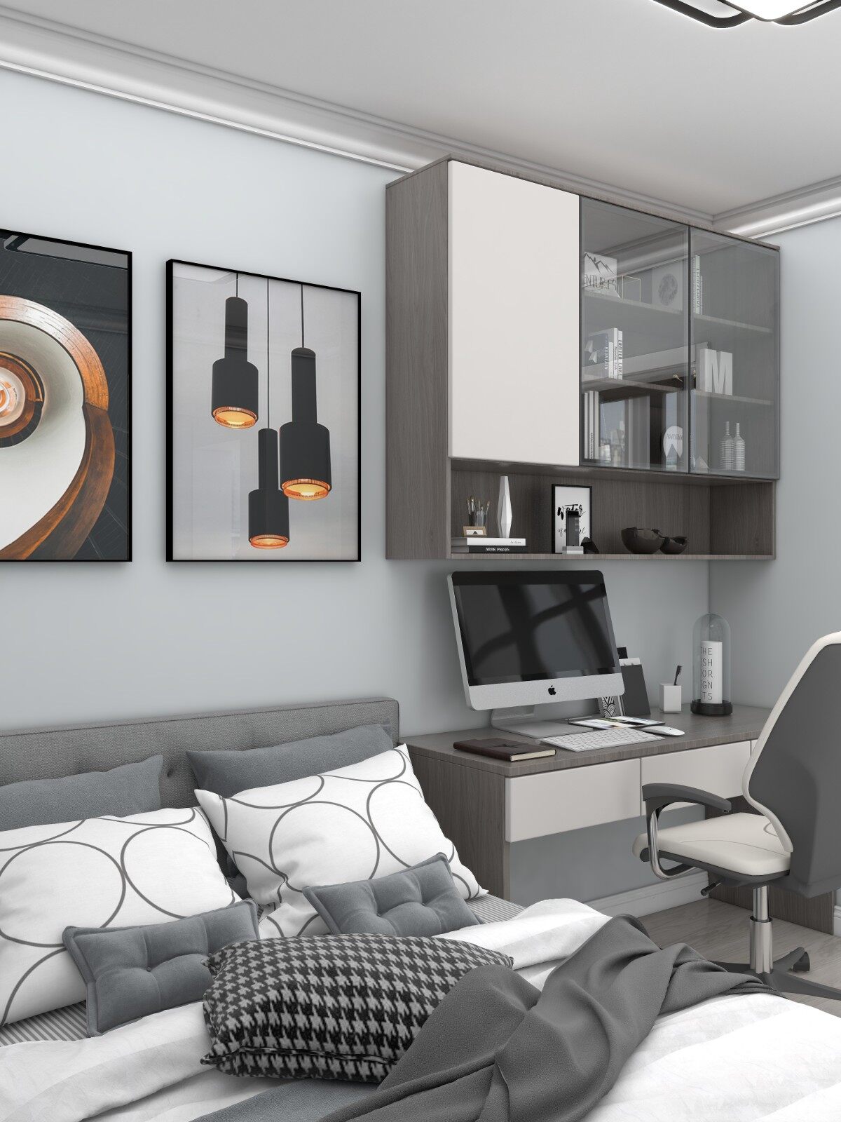 卧室增加写字台,方便业主学习办公,并且增加储物柜,满足大量的收纳需求,让一些琐碎物品也能安排好!