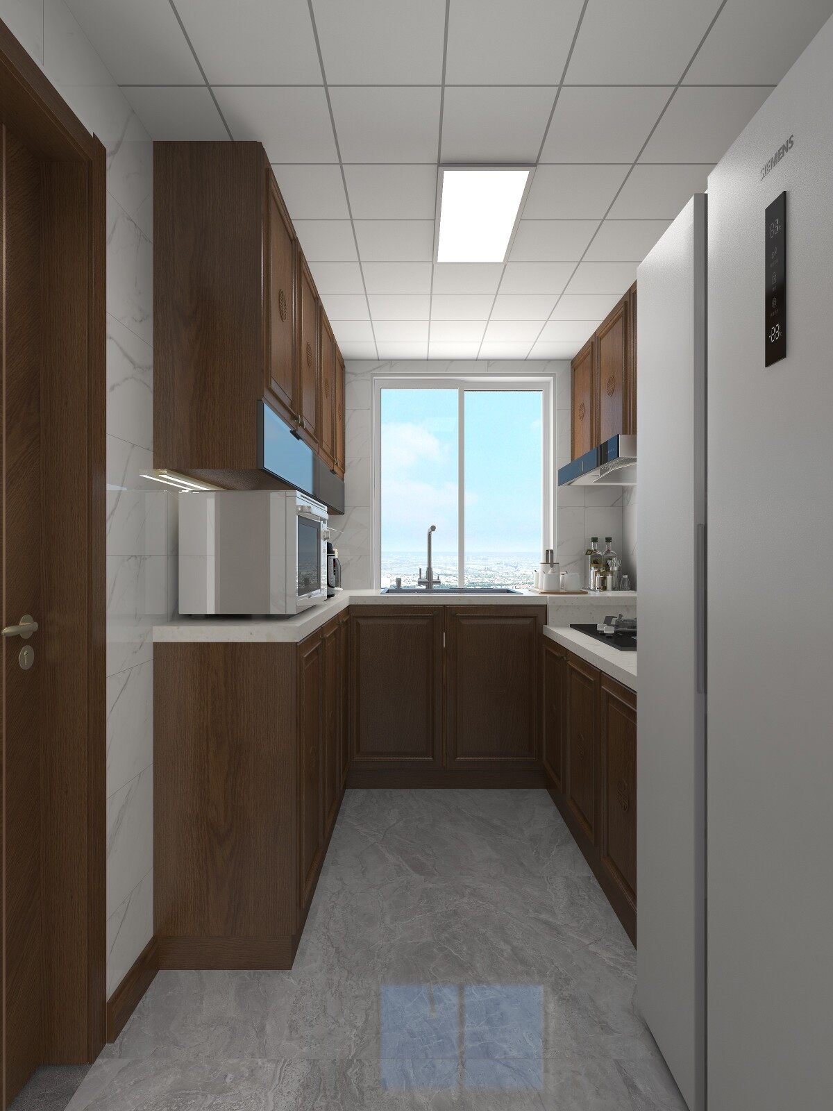 厨房设置在入门处附近,U型操作台动线合理,便于操作,高低台的设计也更加符合使用习惯,同时增强家人之间的互动性!