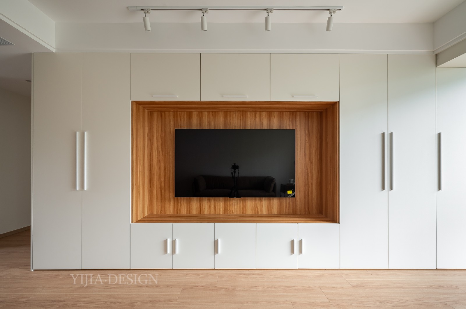 电视柜做的是定制回字形的满墙电视柜,颜值和日常收纳都统统解决。