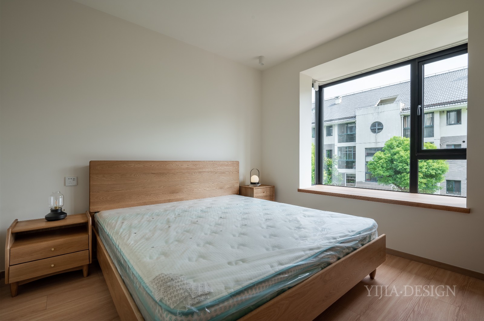 卧室整体氛围自然质朴,没有多余的修饰,自然纯粹的原木元素,让卧室变得更加温馨舒适。