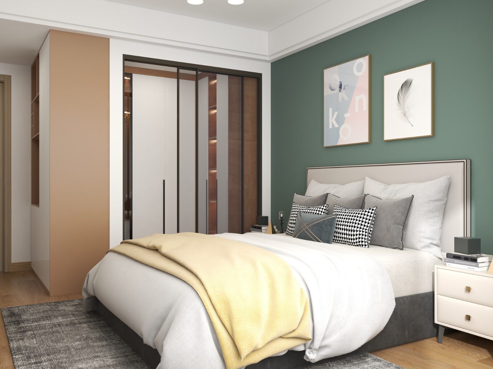 主卧增加一个衣帽间,增加家里的储物空间。墙面整体做暖色调乳胶漆。阳台部分也是充分利用做收纳。