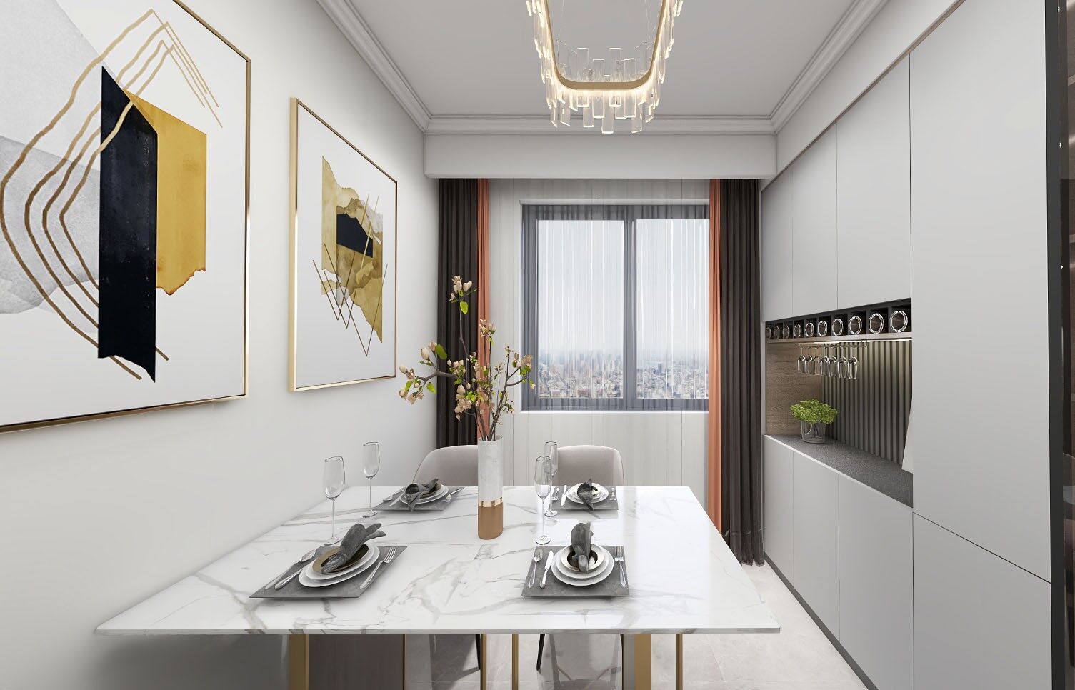 将原来北卧改成餐厅,就餐区空间相对之前宽敞,靠窗户,采光充足~客餐厅一体化设计,视野更加开阔!