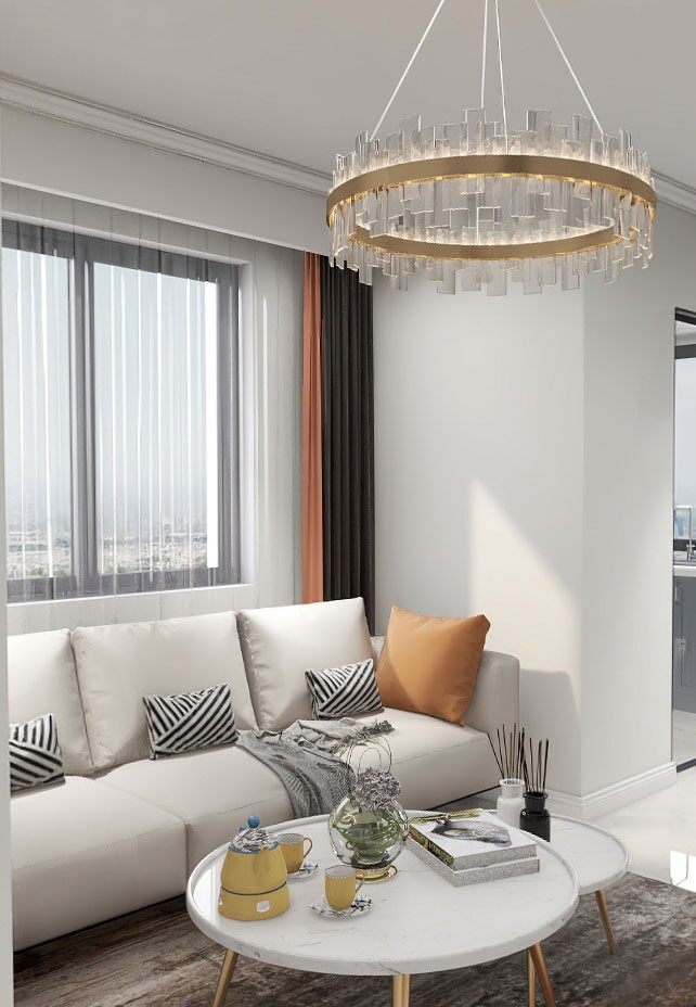 客厅放置米色布艺沙发,清新自然,原有柱子纳入主卧,客厅虽小但更整洁,无凸角~