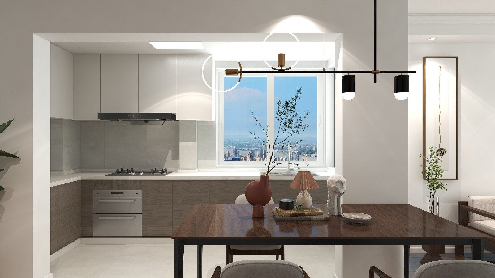 餐厨一体化设计,将两个功能区域打通,提升空间连贯性与整体性,增强家人之间的互动感。