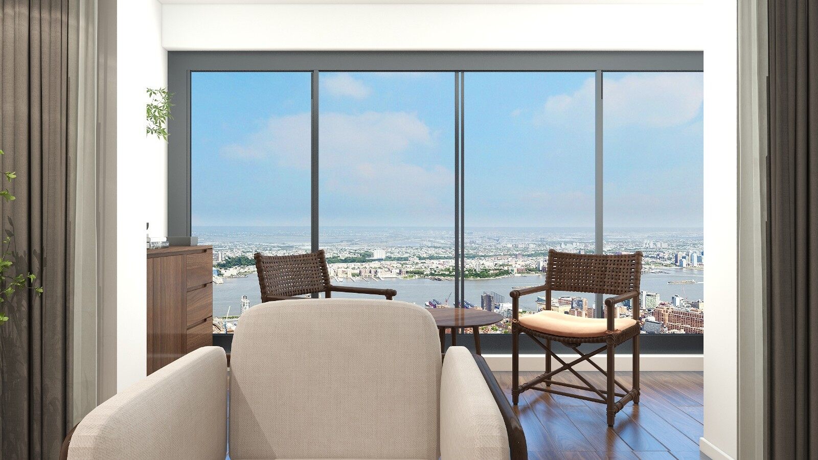 客厅与阳台相连,提高客厅的采光实力,并且也能让两个空间看起来更加通透轻盈~