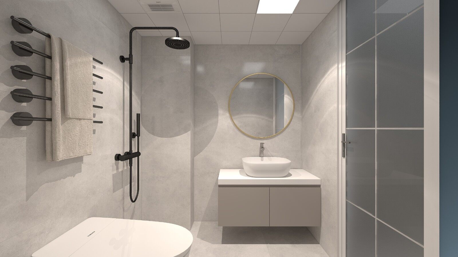 外扩增加干湿分离功能,卫生间门原始淋浴房很大,浪费空间,且没有壁龛,重新设计了卫生间布局,保证淋浴空间足够,活动区域也够宽敞。