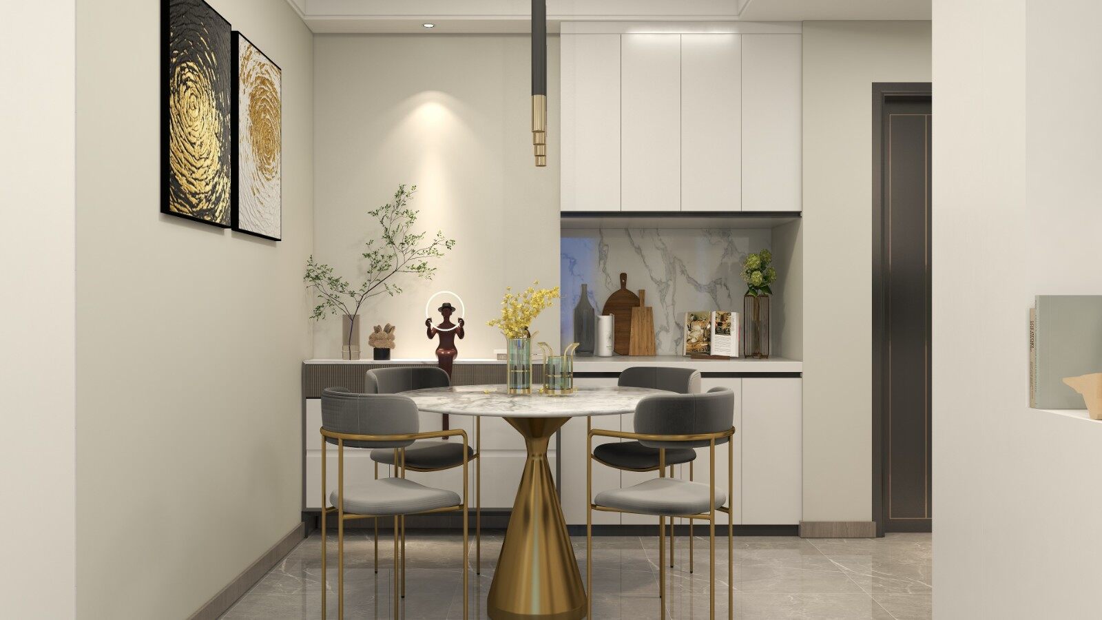 金属元素加持的餐桌椅与整体轻奢风格相辅相成,寥寥数笔让餐厅更具艺术气息,演绎时尚都市风。