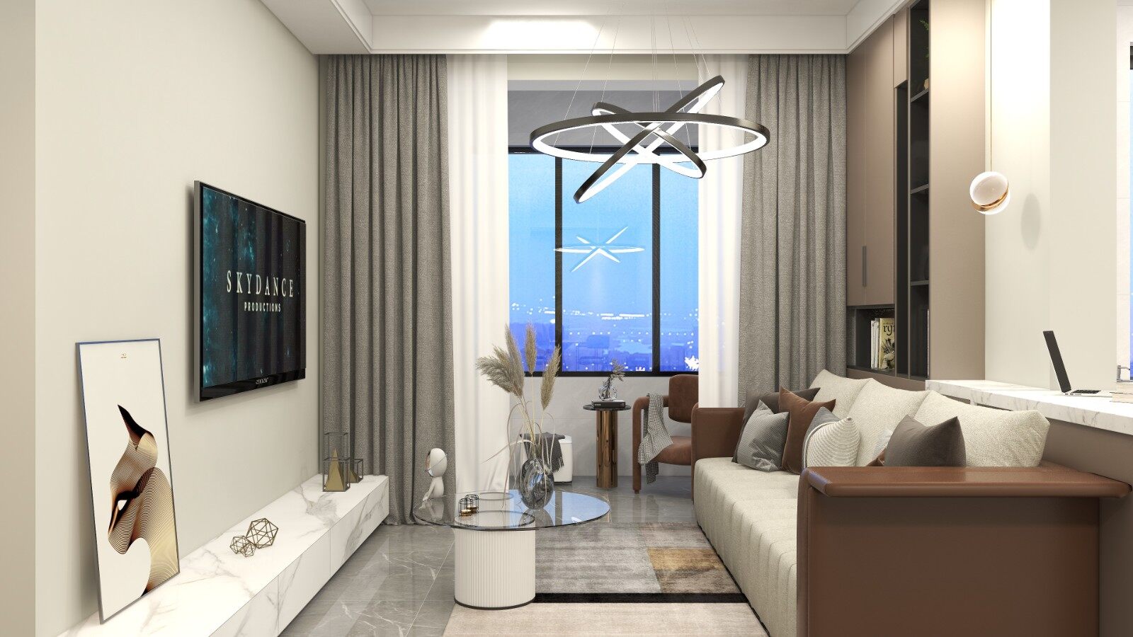 一字型沙发作为客厅的视觉焦点,搭配精巧茶几与大理石纹的电视柜,屋内多了几分精致典雅~