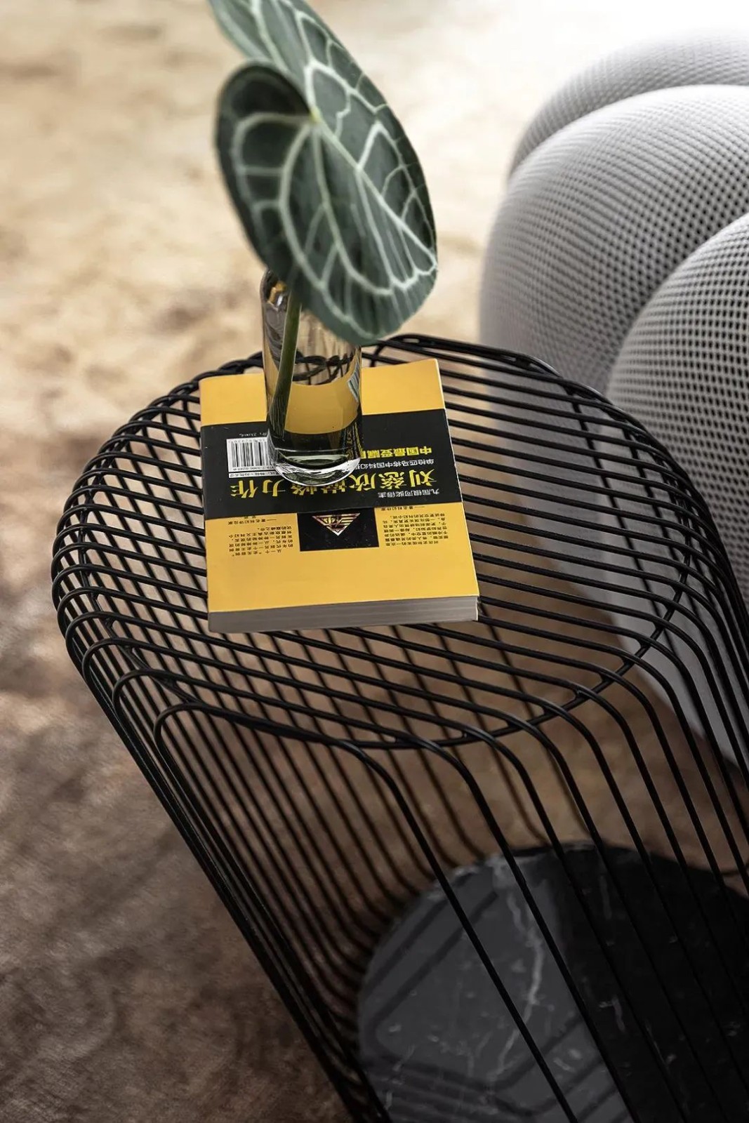 会客厅开放式设计,镂空式造型的茶几就像是颠倒的山峦,搭配明黄色的休闲椅更显个性。