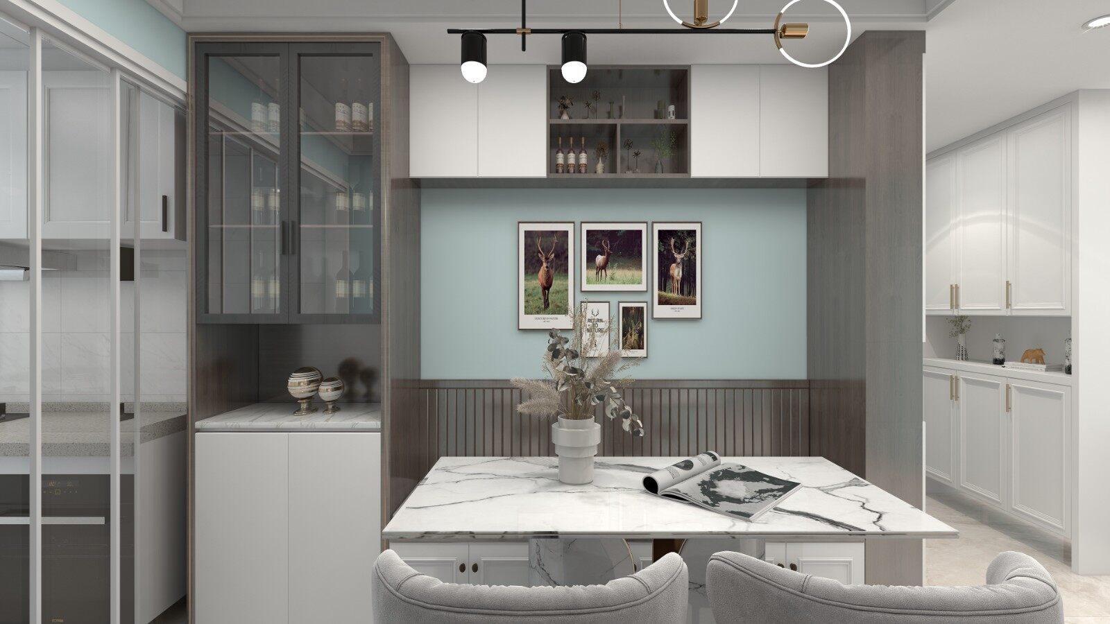 本案是一对夫妻和两位小朋友一起居住,1、原始户型厨房和餐厅之间的关系比较尴尬,厨房储物功能并不多,餐厅比较鸡肋;男主需要有室内办公的需要;需要客厅舒服些,预留出1.5米的宽度给以后可能的客人入住需求做准备。