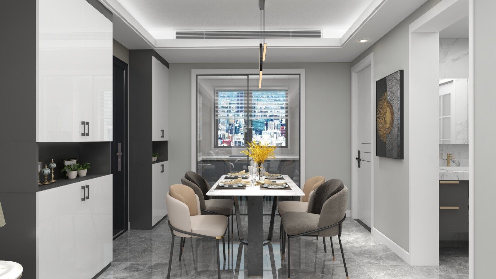 通过经典的黑白灰打造宽敞明亮的视觉效果,并且加入收纳柜,能满足较多的收纳需求。