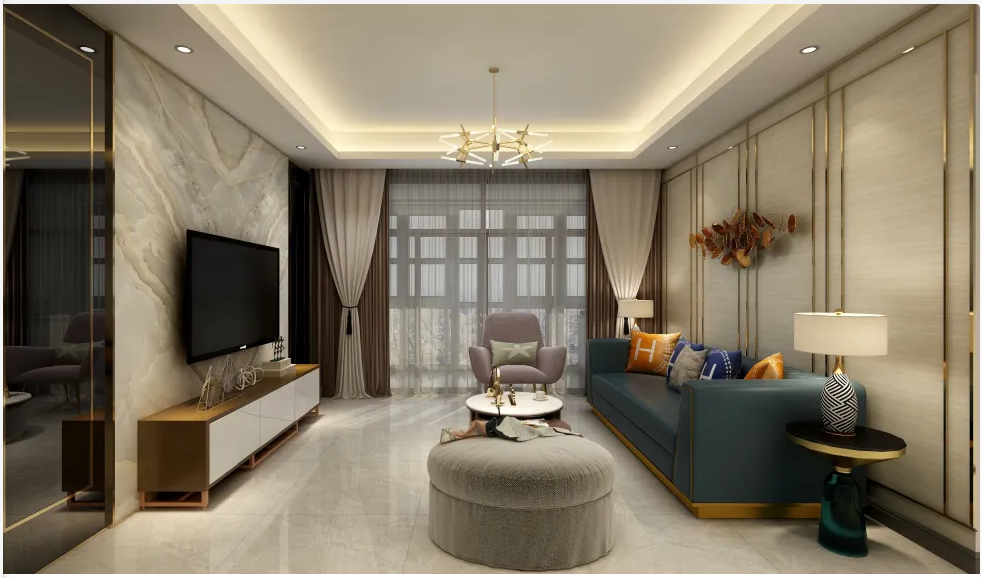 客厅吊顶使用灯带做点缀,配合沙发电视柜等,不因空间面积大而觉得孤单,就像家人随时能团聚一般,温暖有爱~