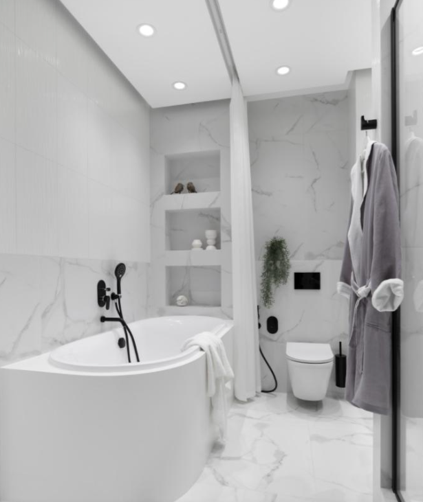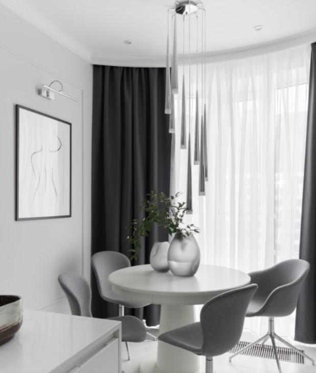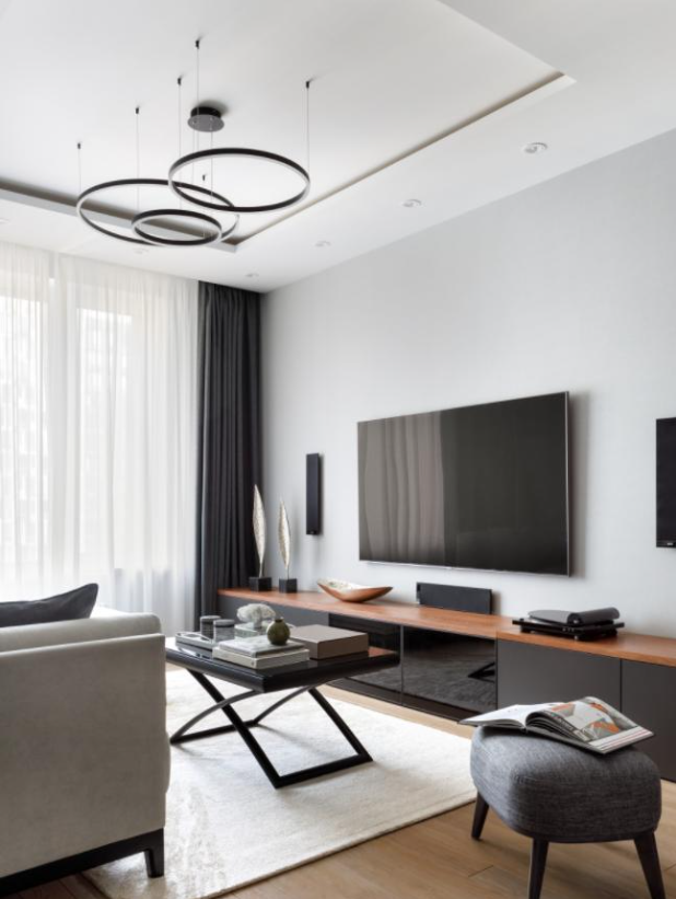 在初次与业主一家沟通之时,一家人便统一了以黑白灰为主色调的现代简约风装修的想法。这让整个设计过程的沟通非常顺利。这是一对父母加十八岁孩子的三口之家,父亲曾是自由职业,早早过上了退休生活,最大爱好便是种花钓鱼,希望家中能有一点自然元素。而母亲则希望拥有独立的衣帽间,女人不论几岁,爱美之心皆常伴。