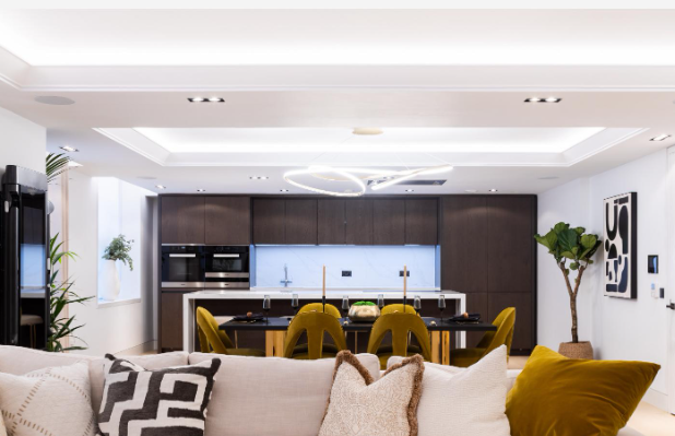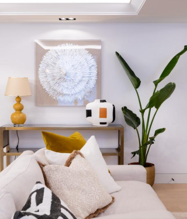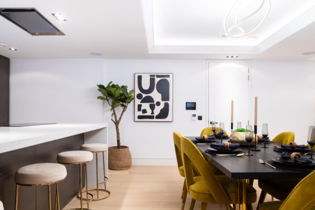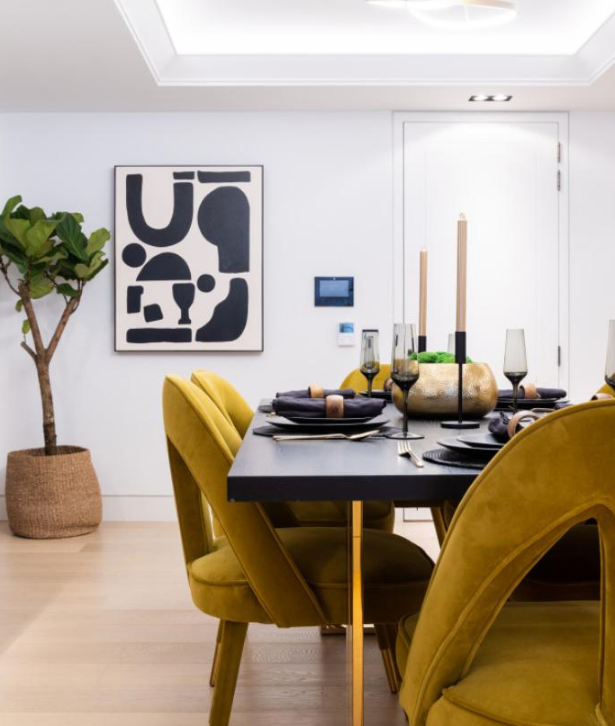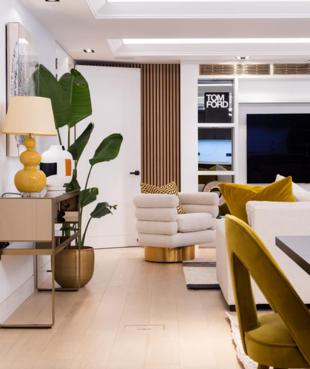 本案业主为一家三口,一对夫妻和他们还在蹒跚学步的孩子。这是一套位于高层的房子,拥有着足够的光线。在第一次跟业主沟通的时候,业主就很明确的提出想要一种现代轻奢的感觉。厨房方面要求有开放式厨房,和餐厅连为一体。并且将整个公共区域客餐厨结合在一起。 其次业主希望在装修中加入一些木头的元素。融入整体的氛围而又没有违和感。 为了营造轻奢感,设计师尽采用了大量金属配饰和毛绒质地。同时用植物点缀整个空间,让整个空间感更加宜居和让人感到踏实。