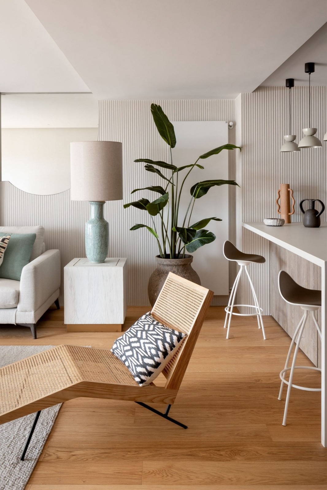 设计师创造了一个精致而优雅、自然又和谐的空间🏠 在整个房子里,设计师选择了简单而优雅的剪影。从简单的软装摆设中突出了材料、纹理和柔和的色调。