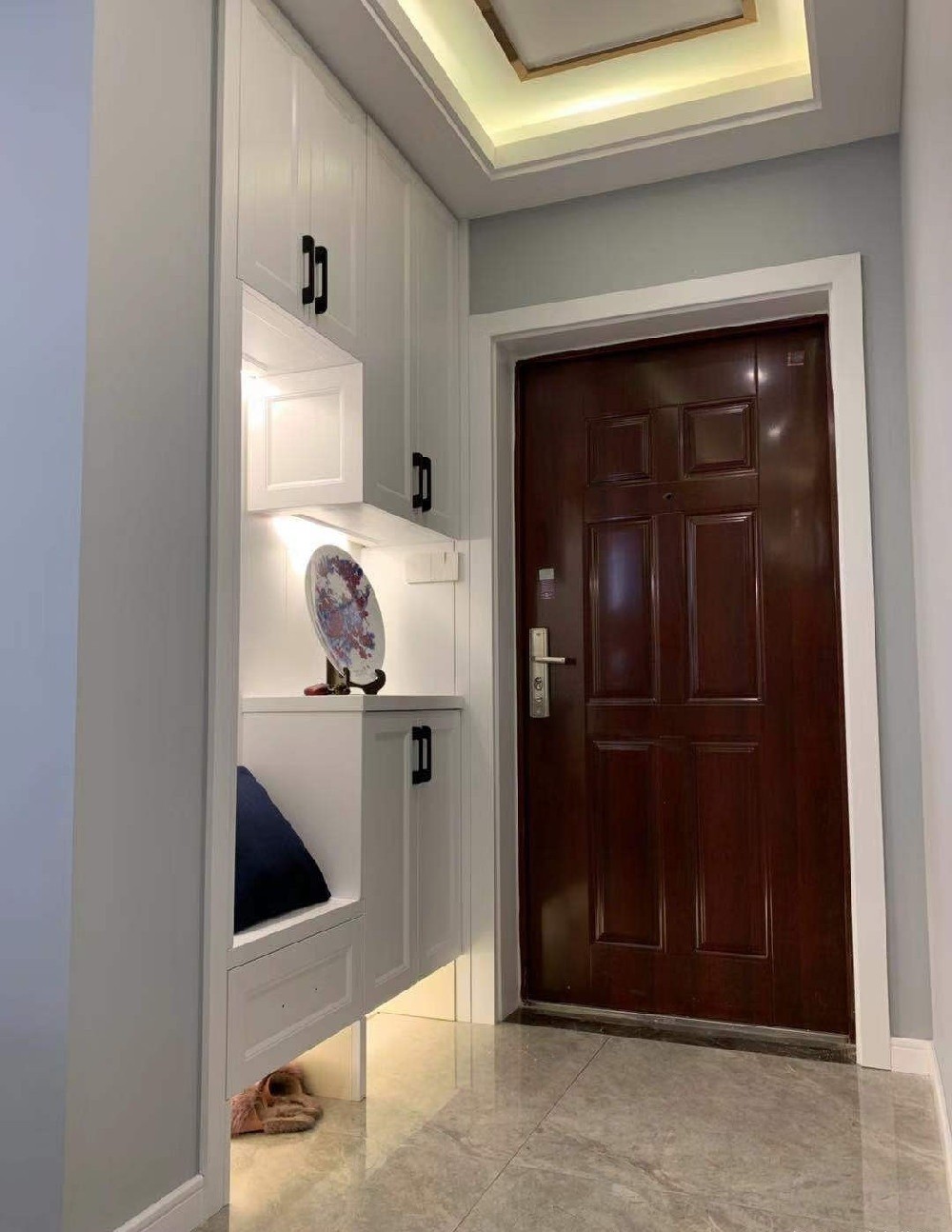 玄关区域的鞋柜设计,设计了高低设计,中间留空处理,进门口的钥匙以及零散的东西有自己的位置摆放。