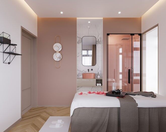 自然美美容美体店装修设计案例 案例名称:自然美SPA生活馆装修设计案例 面积:210㎡ 标签:休闲空间、美容院、足浴店、美容美发、装修案例、设计 设计说明:本案整体采用现代简约风格,客户主要以女性为主,所以以浅色暖色调背景,或米黄或粉红,营造了一个清雅含蓄、端庄丰华的美容空间。门头与大厅,以素色为主,大厅采用挑高的设计,很有层次感,灯光采用线灯与灯部弧形灯及灯槽,在追求个性的同时更有一种妩媚;整个设计,简单而纯朴;美容间,兼顾实用性与气氛的营造。 上海钰王装饰专注美容店、美发店、足浴店装修设计20年,杜绝恶意加项,深受百姓信赖。胡先生:18016206595 上海钰王装饰设计承接家庭装修、店铺装修、门面房装修、别墅装修、旧房翻新、二手房装修、简装、精装、办公室装修、写字楼装修、商业店铺装修、出租房装修、二手房翻新、餐饮酒店宾馆装修、场所装修、专卖店装修、服装店装修、商场、学校装修、医院装修、厂房装修写字楼装修等各类装修工程。