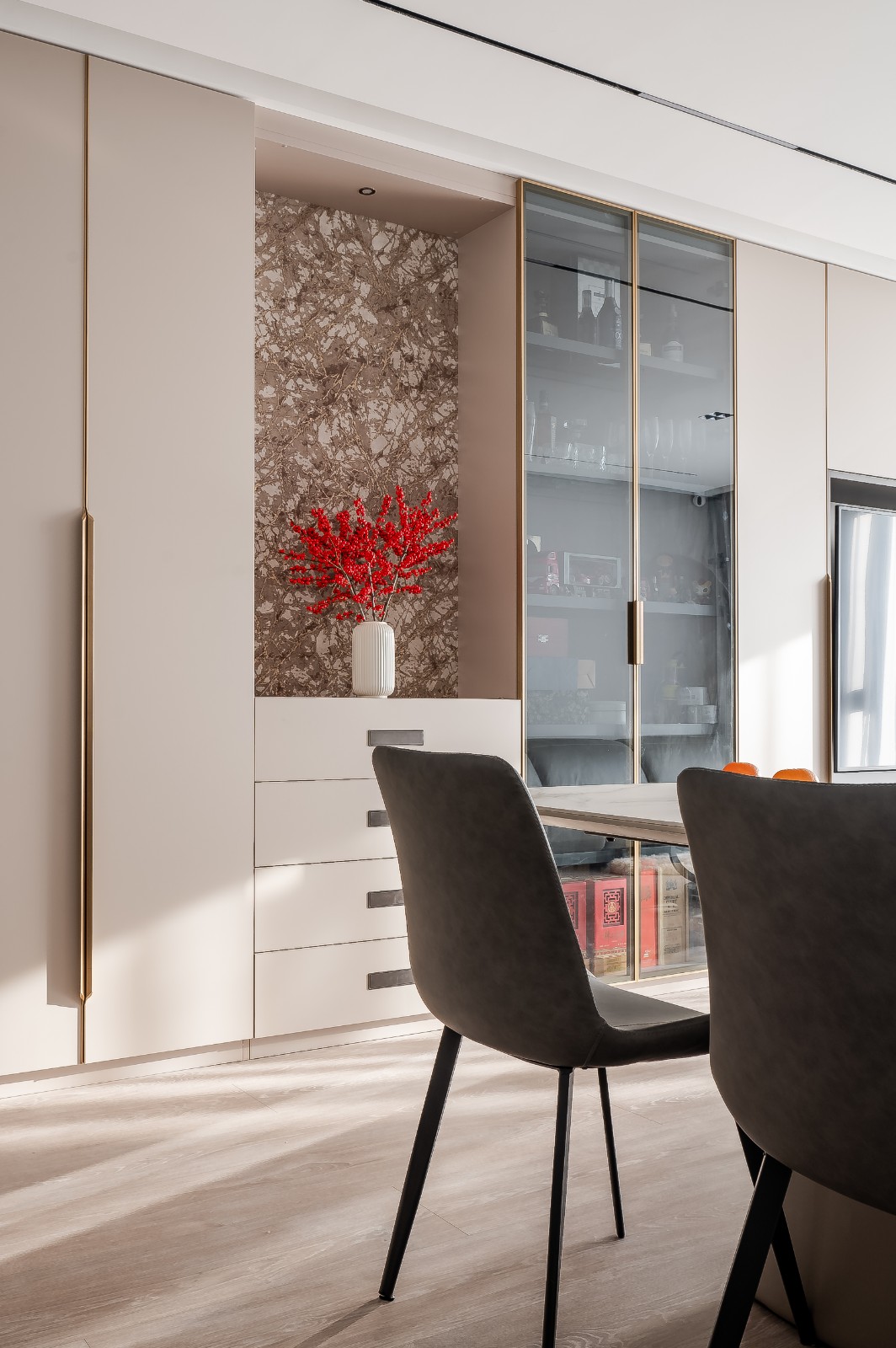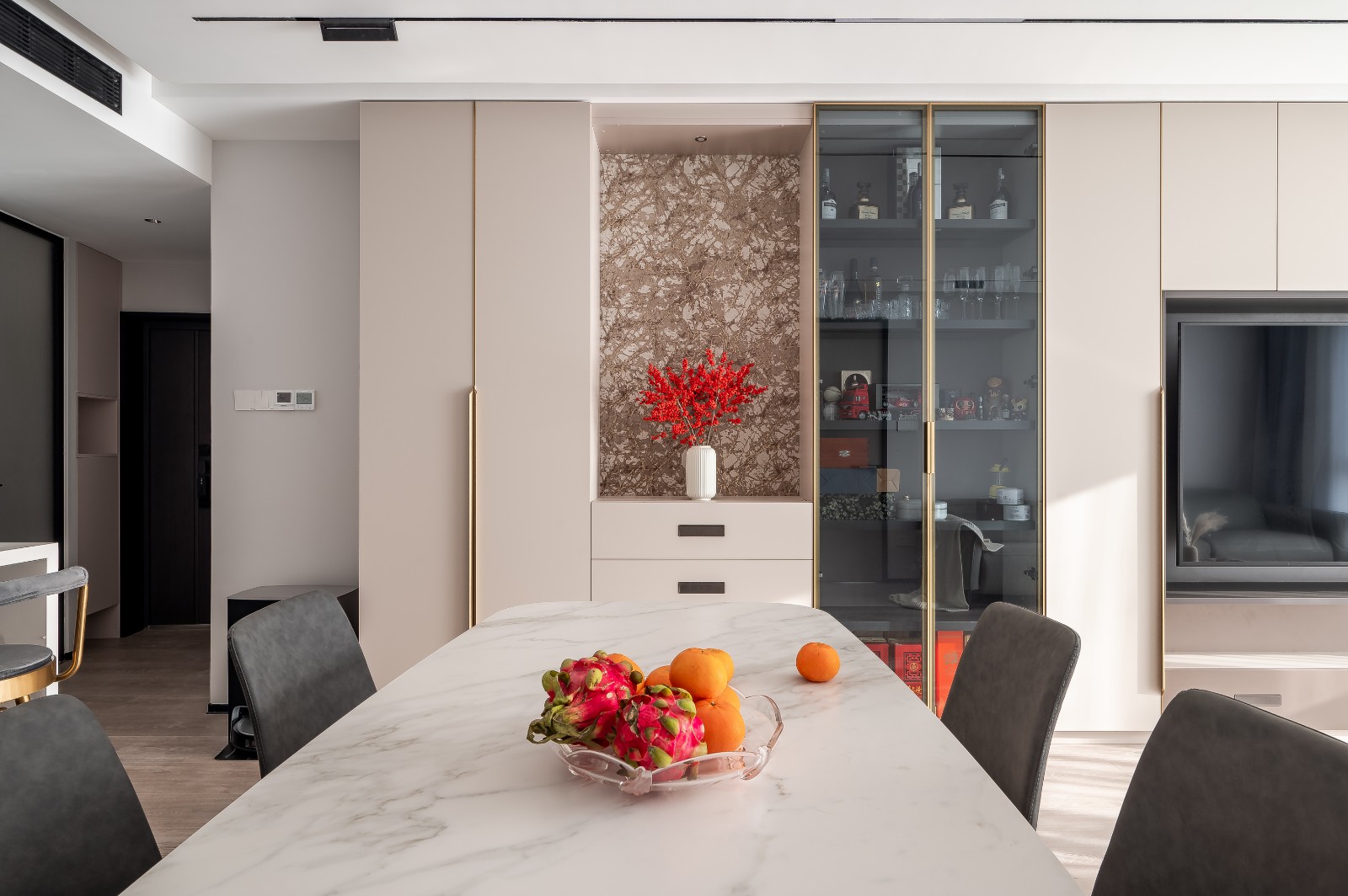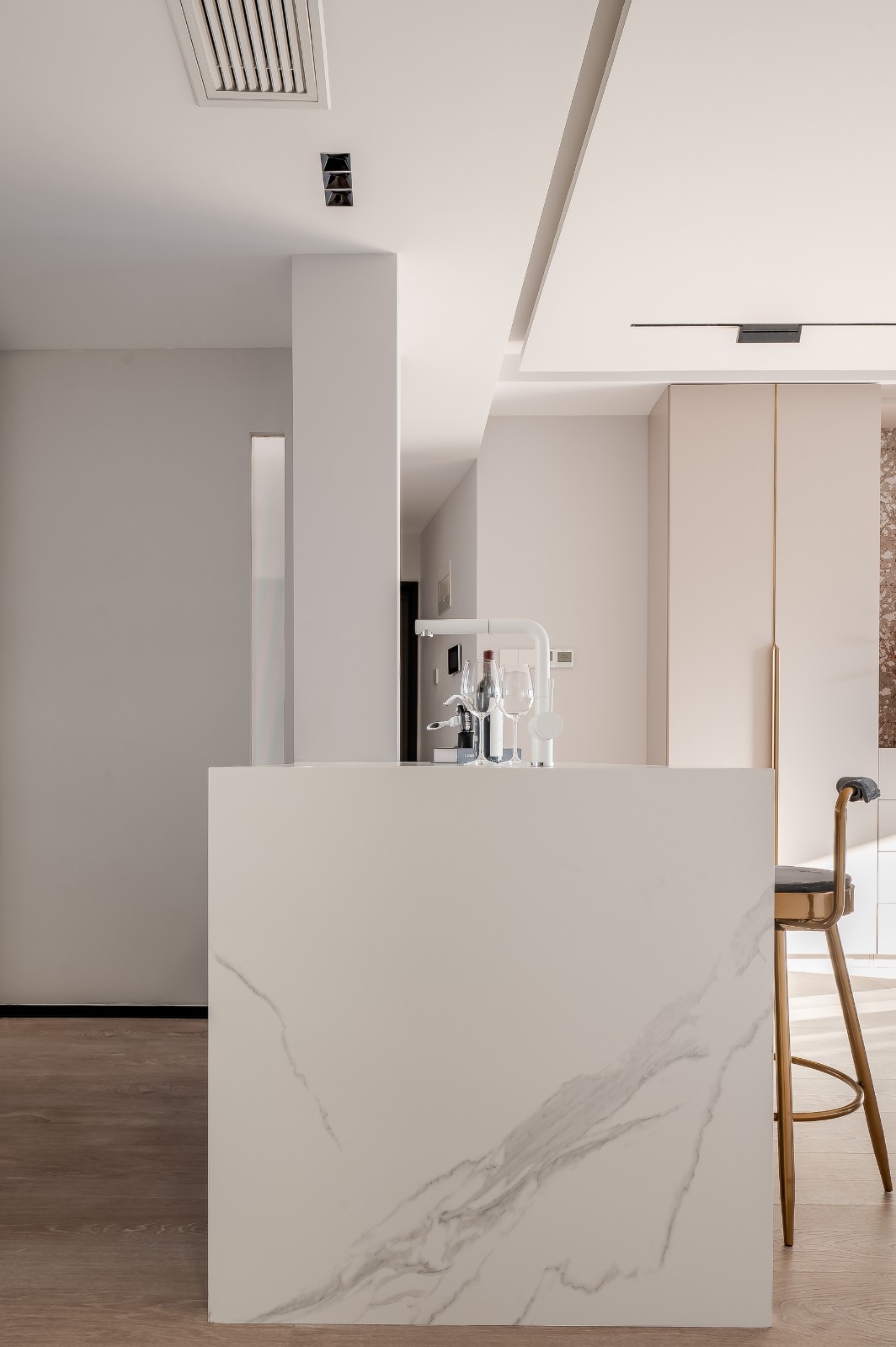 本案是位于外滩附近的旧房改造。近20年的楼龄让它拥有这类老房子共同的一些缺陷:室内空间局促,采光不佳,厨房和卫生间的动线非常不合理,反而造成了空间浪费,收纳问题也非常令人头疼。 我们根据屋主一家的需求,重新规划布局,将公卫移位到进门处,原来紧凑的格局得到改善,动线也变得更加流畅!不仅原有的三室宽敞明亮,客餐厅也格外通透~ 释放出的空间,我们打造了中西分区的厨房,还在餐厅设置了岛台!无论是带孩子在这里体验烘焙,还是日常小酌两杯,都能极大的提升幸福感。