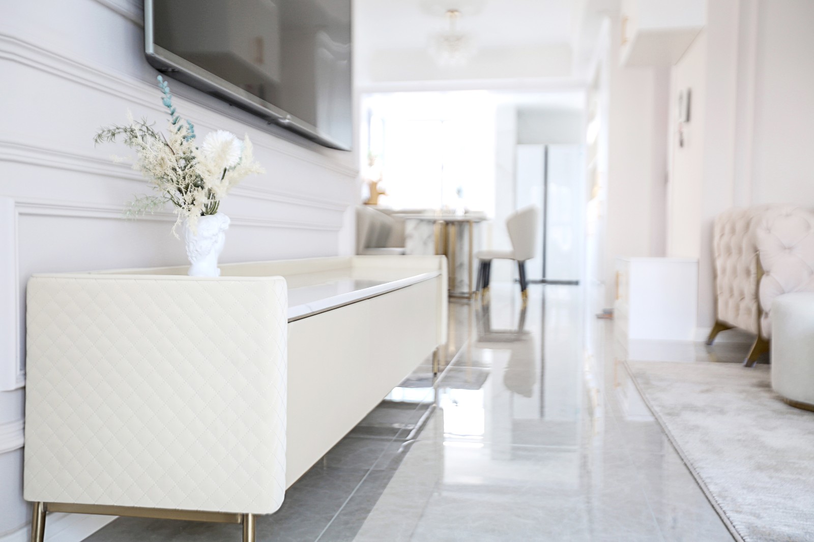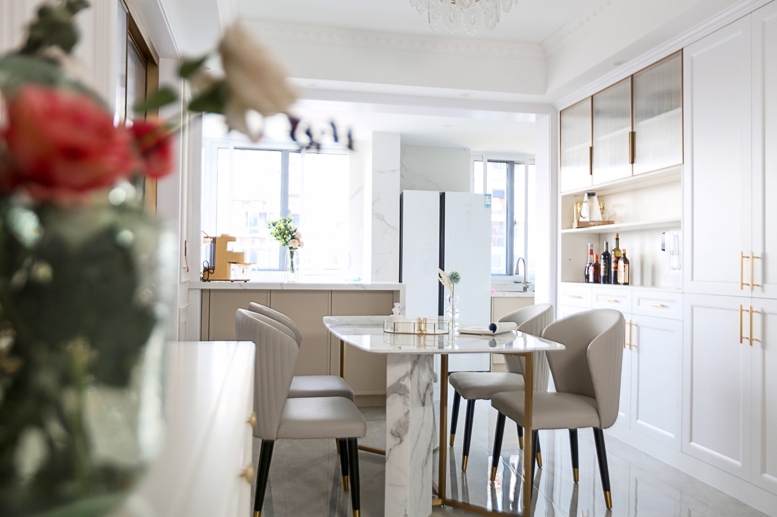 这套房子主要是母女俩居住。女儿是在澳洲留学,也特别喜欢欧式的风情,所以这套房子的装修以女儿的审美和喜好为主来打造。 女儿在国外留学其间,深受当地开放、互动、多元文化的吸引,也特别喜欢开放式厨房,所以在设计上特别注重打开厨房的格局,加强厨房和餐厅、客厅之间的联通。 另外,卧室内的飘窗台大家都觉得没什么用,所以就把它利用起来,改造成女儿可以梳妆和学习的地方