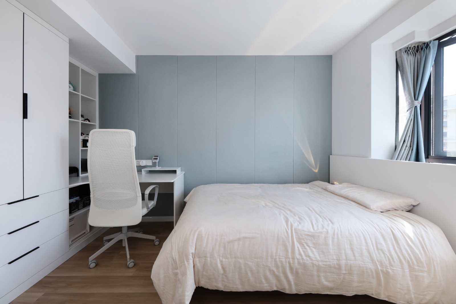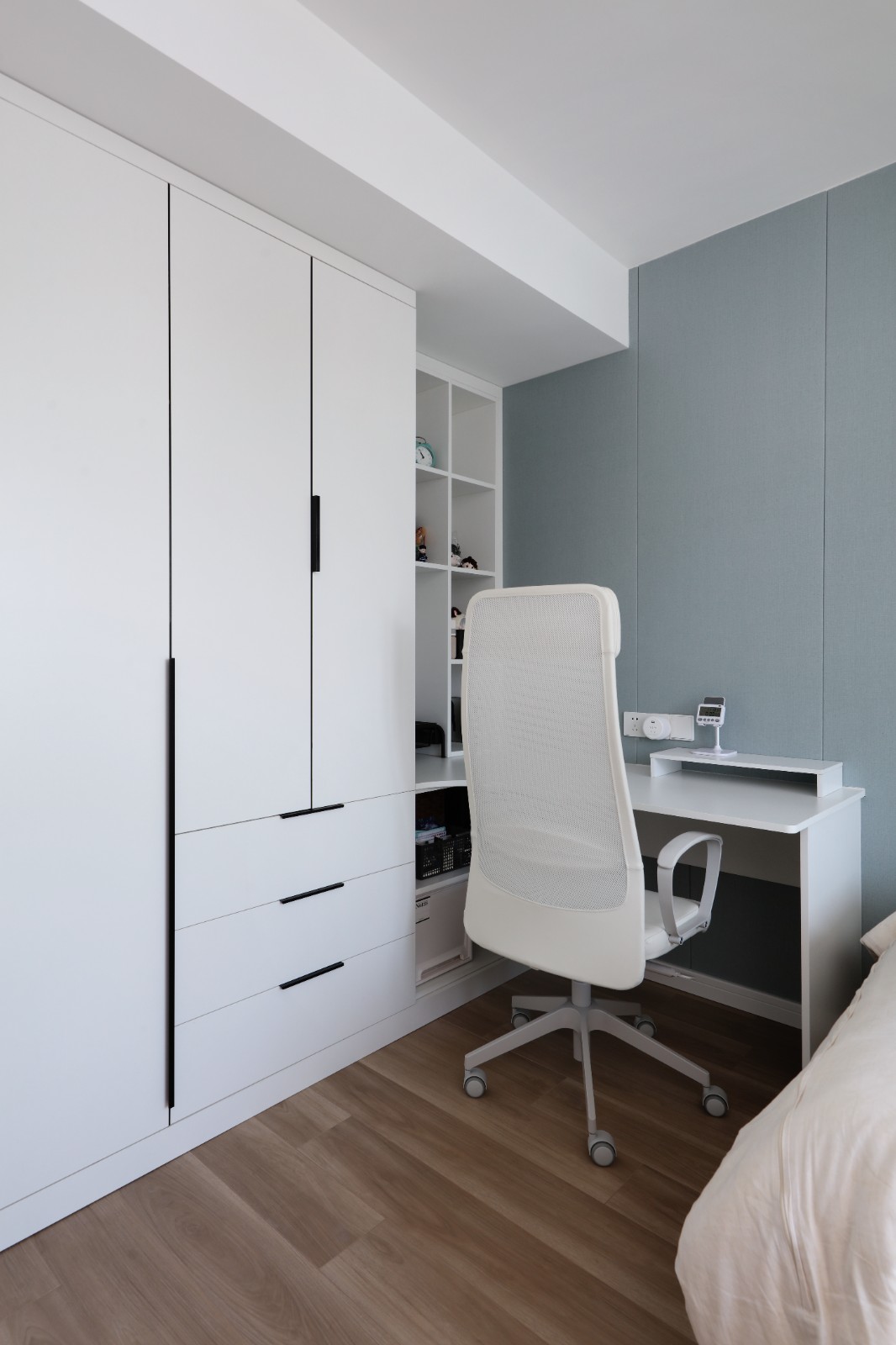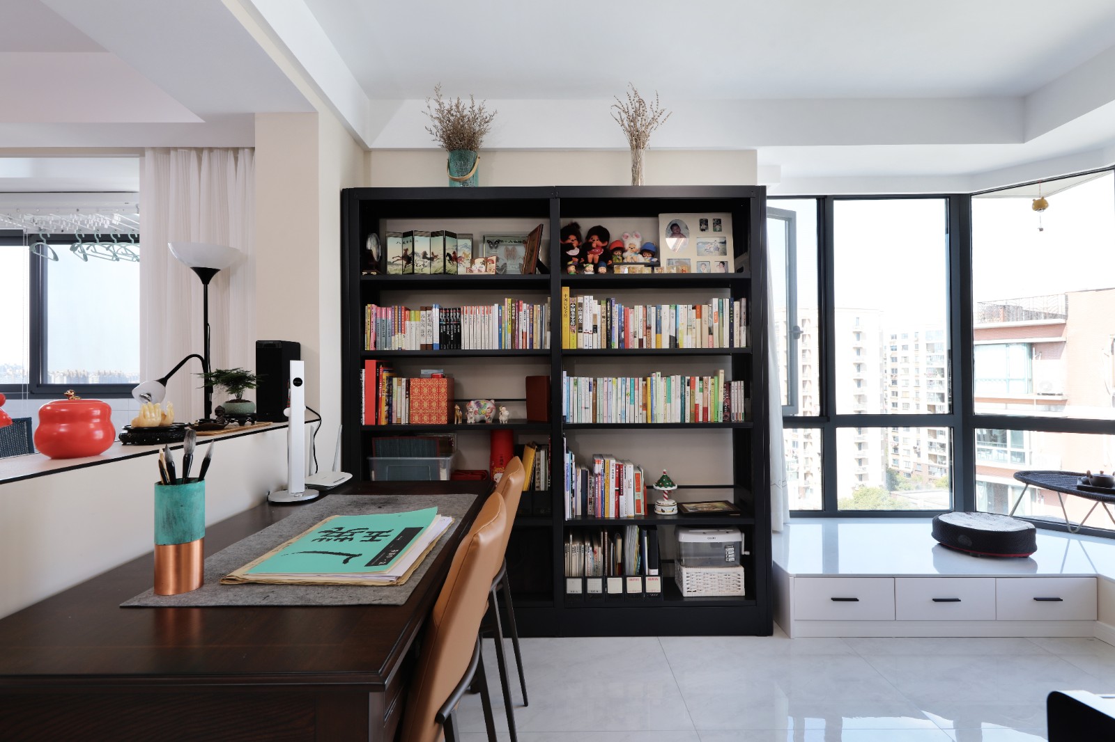 本案是位于普陀区大华阳城花园的一个旧房改造,业主是一个三口之家,居住这是瑞典宜家的高管,特别在意生活品质,对于书法也有很高的造诣,所以设计师在书房的设计上更为注重,因为拥挤的结构没有办法拥有一个宽敞明亮的书房,和一张满足写作的书桌,所以我们设计师选择以现代风格为主,淡化空间隔阂,打造慵懒的生活氛围 设计是一个化繁为简的过程,通过设计来提升居住者的生活品质,根据不同的需求完美利用每个空间,用整个空间的互动,来给予客户更加舒适的生活状态