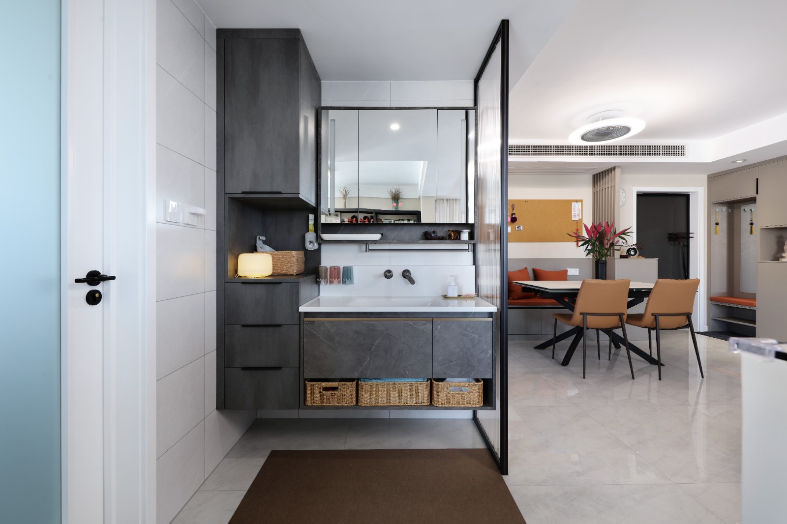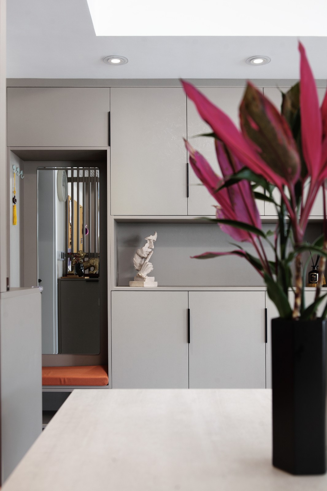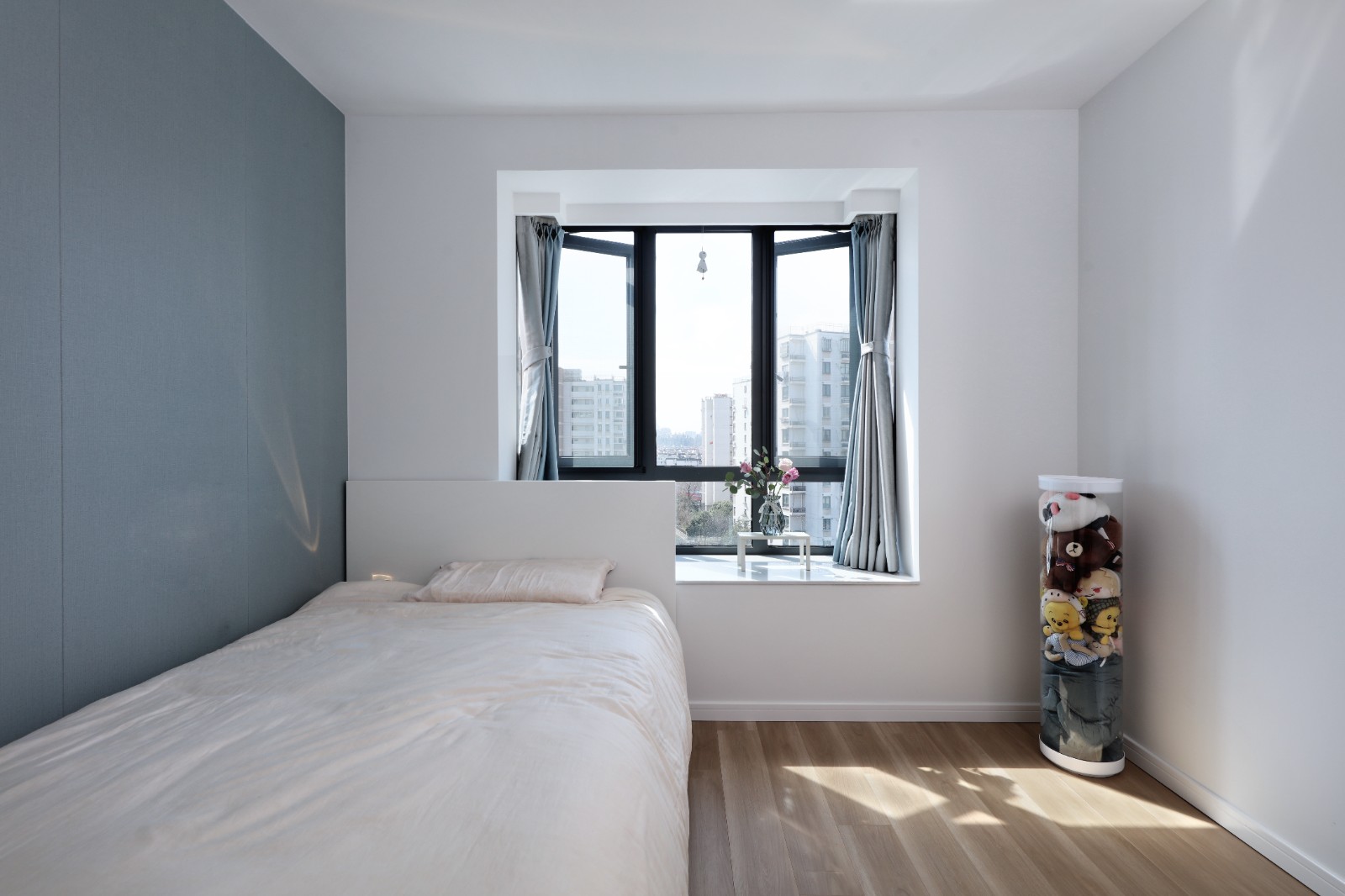 本案是位于普陀区大华阳城花园的一个旧房改造,业主是一个三口之家,居住这是瑞典宜家的高管,特别在意生活品质,对于书法也有很高的造诣,所以设计师在书房的设计上更为注重,因为拥挤的结构没有办法拥有一个宽敞明亮的书房,和一张满足写作的书桌,所以我们设计师选择以现代风格为主,淡化空间隔阂,打造慵懒的生活氛围 设计是一个化繁为简的过程,通过设计来提升居住者的生活品质,根据不同的需求完美利用每个空间,用整个空间的互动,来给予客户更加舒适的生活状态