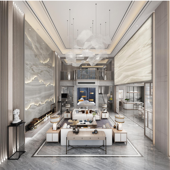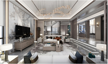 设计师通过新中式风格的家居设计,将中国传统文化与现代生活需求相结合,注重空间层次的打造。融合了现代简约的几何图案及线条的设计风格,用现代符号将古典的神韵体现出来。